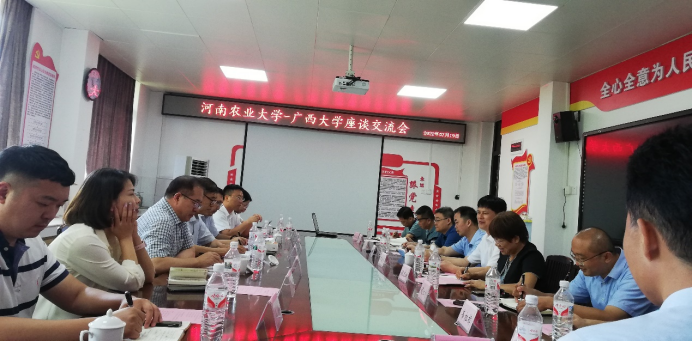 河南农业大学刘小军、李转见、张彦华、宫玉杰,广西•中关村创业创新人才基地高级项目经理王博、李小蔓,威廉官网中国官方网站科技处副处长司红彬,威廉官网中国官方网站常务副院长陆阳清及副院长周磊、宁鹏飞、韦祖樟、何家康,威廉官网中国官方网站党委委员、全国高校“双带头人”教师党支部书记黄伟坚教授,教师代表李辉副教授参加了本次座谈交流会。