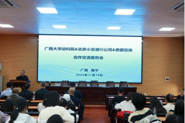 11月19日下午15时,北京小龙潜行科技有限公司、思勰咨询“产学研”合作交流报告会在威廉官网318报告厅举行。本次交流会邀请了北京小龙潜行科技有限公司CEO鞠铁柱、研发总监张兴福、产品化总监黄平和思勰咨询创始人陈兴,共同探讨了生猪养殖数智化的发展趋势和挑战。陆阳清院长、何家康副院长以及近百名师生参加交流会,会议由兰干球教授主持。