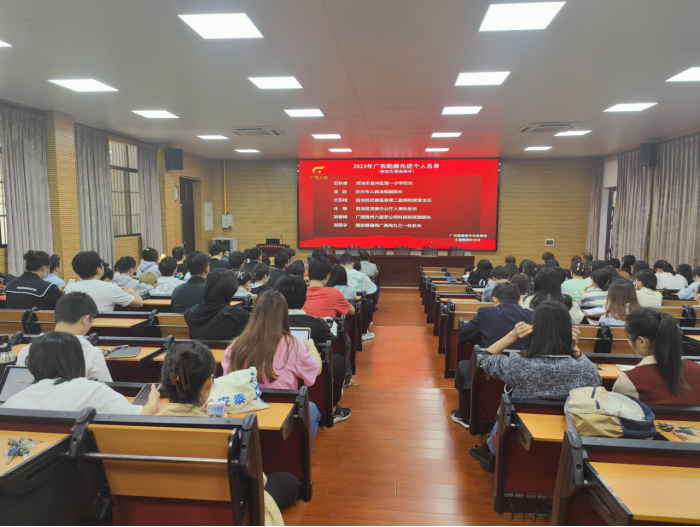 威廉官网组织师生党员集中观看《广西勤廉榜样先进事迹主题情景报告会》