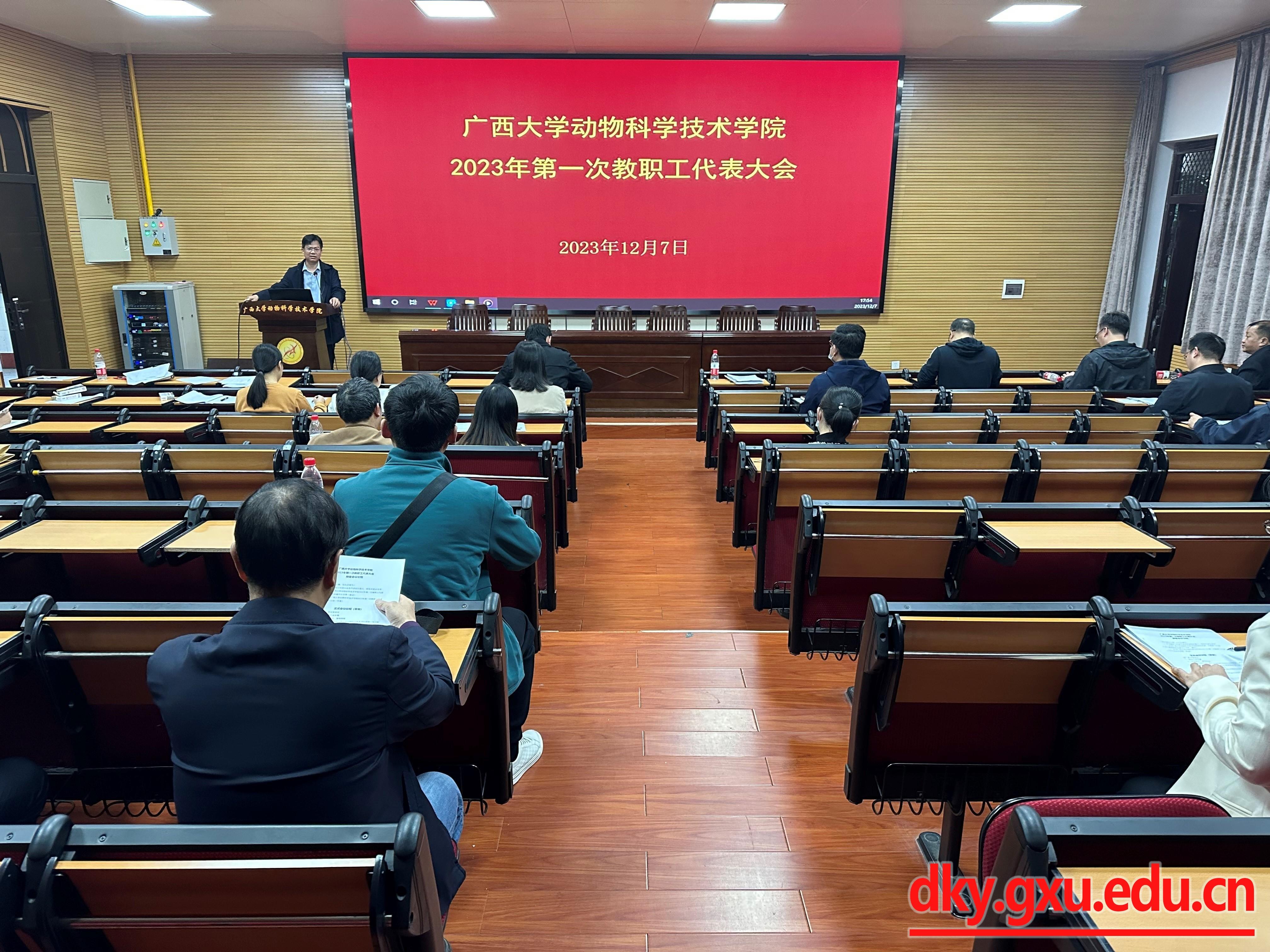 12月7日下午,威廉官网中国官方网站2023年第一次教职工代表大会在学院318报告厅召开。与会代表听取、审议并通过了《威廉官网中国官方网站2023年贡献绩效工资分配方案》《威廉官网中国官方网站分工会2023年会费收支情况报告》。威廉官网中国官方网站党委书记韦小强参加会议并作总结发言。威廉官网中国官方网站院长陆阳清,党委副书记沙建,副院长、分工会主席宁鹏飞,副院长韦祖樟参加会议。