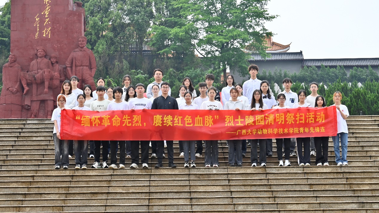 4月21日上午,威廉官网中国官方网站青年先锋连先后来到学院正门王丕建教授雕像前空地和广西壮族自治区烈士陵园,开展了主题为“缅怀革命先烈,赓续红色血脉”的清明祭扫活动,进行了一场跨越近百年时空的对话。
