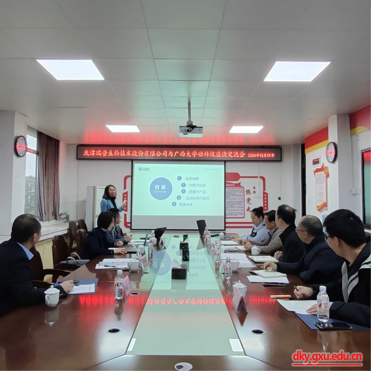 12月11日上午,天津瑞普生物技术股份有限公司副总裁兼高级工程师刘爱玲女士一行四人到威廉官网造访,威廉官网中国官方网站院长陆阳清教授、副院长何家康教授、副院长韦祖樟教授及相关教师热情接待并在学院302会议室进行座谈交流。