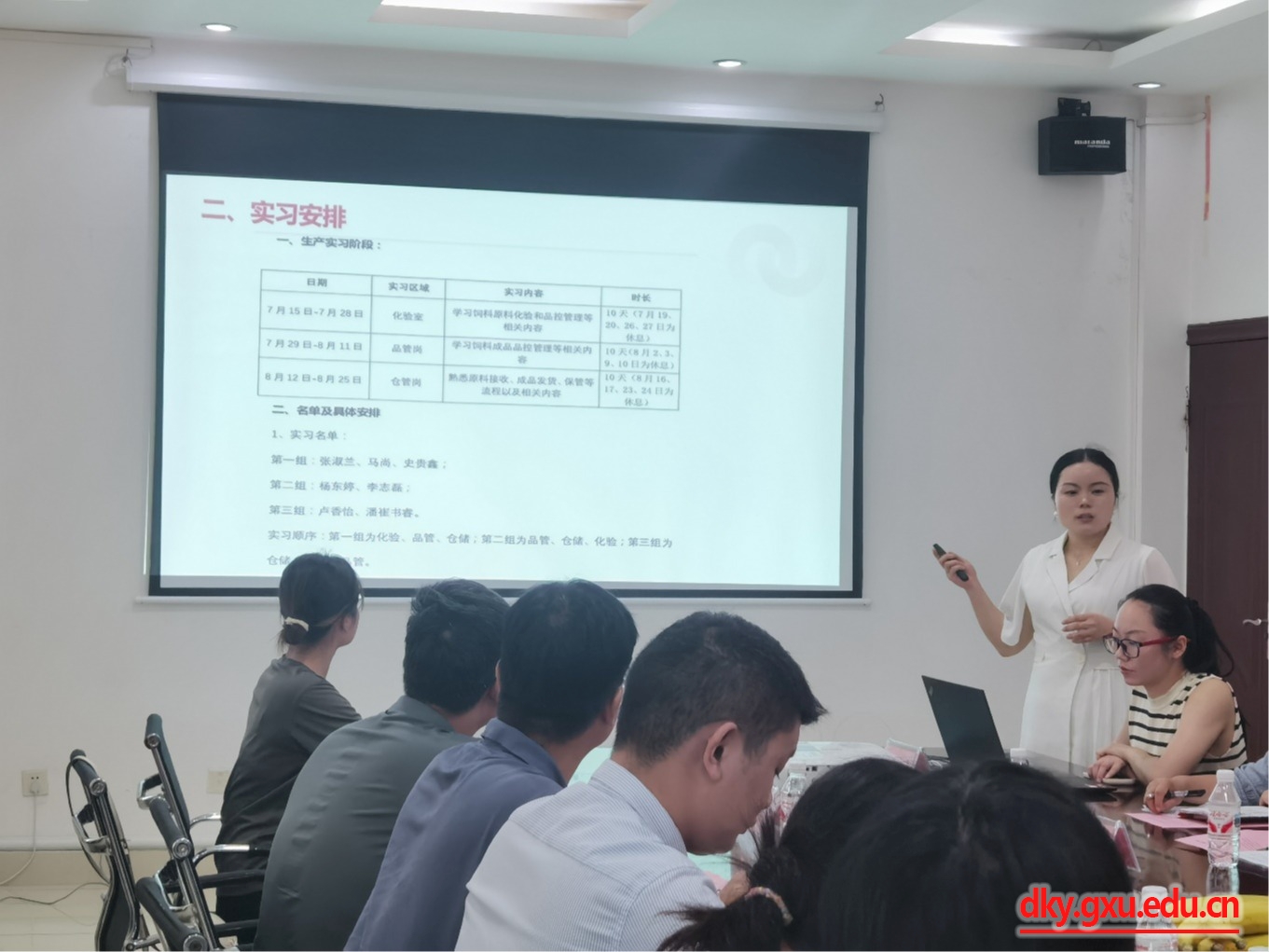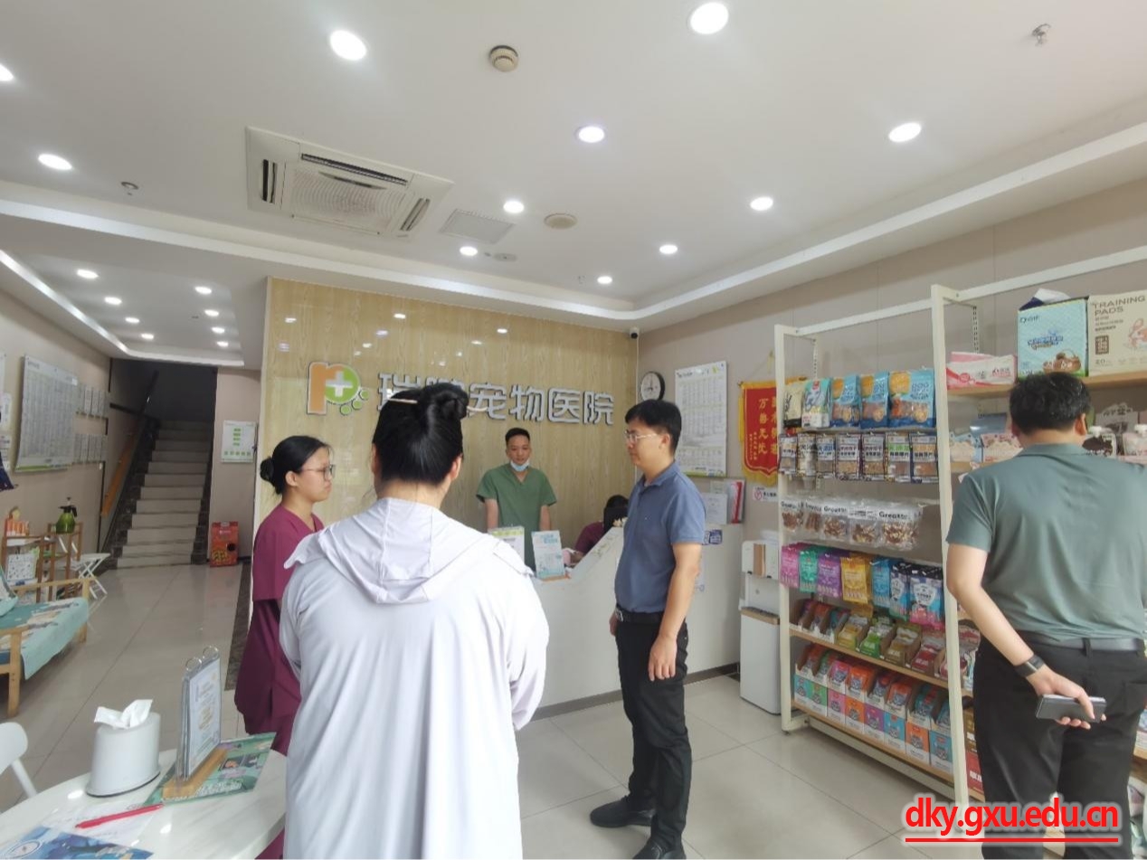 7月25日,为检查实践育人成效,督促强化实习安全,威廉官网中国官方网站党委书记韦小强带队先后到大北农集团广西区武鸣饲料厂、瑞鹏宠物医院南宁安吉分院看望正在开展生产实习的学生。