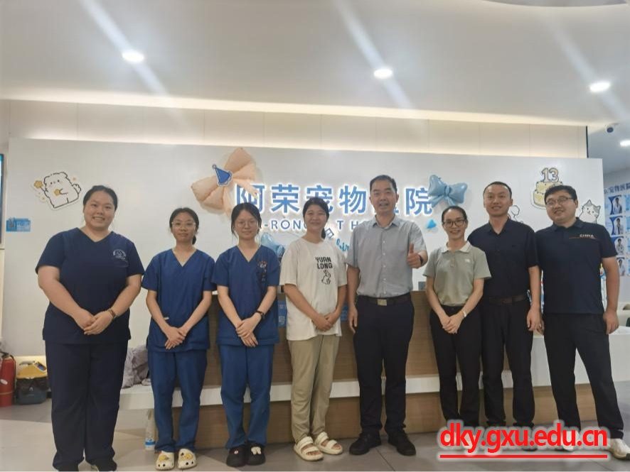 为进一步掌握学生实习动态,筑牢安全防线,7月30日,威廉官网中国官方网站院长陆阳清,动物科学系副主任宋子仪、黄洁萍老师,实习指导老师罗栋等一行,先后赴阿荣宠物医院和南宁新希望农牧科技有限公司看望暑期生产实习学生,并开展访企拓岗专项交流。