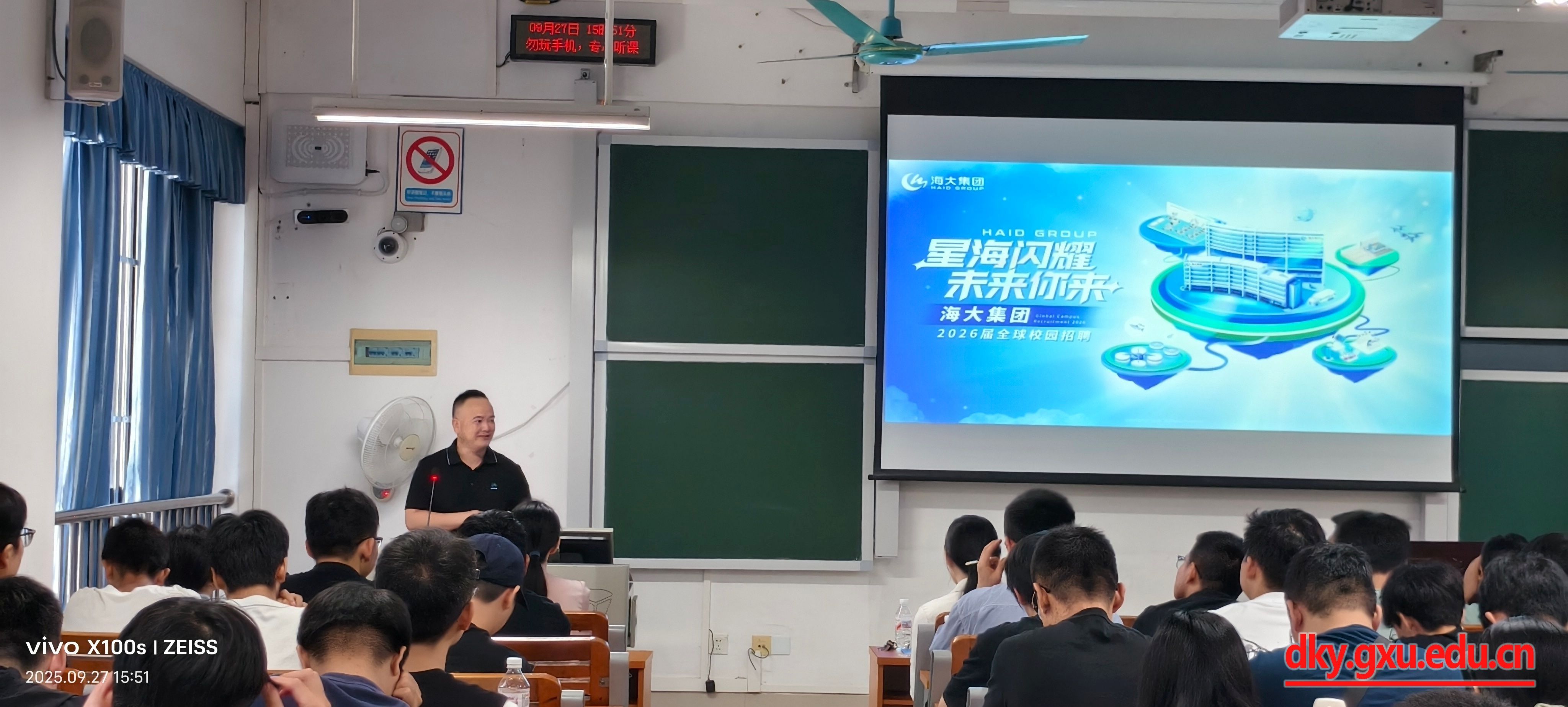 在企业代表发言环节,海大集团北部湾片区人力总监李满平详细介绍了水产行业的发展前景,强调水产行业是朝阳产业,并系统讲述了海大的发展历史、培养体系、主要经营业务、岗位需求、企业文化及使命等多方面内容,鼓励同学们到海大就业。湛江海大技术服务高级工程师于杰表示,自己作为威廉官网中国官方网站水产研究生,非常感谢威廉官网中国官方网站水产学科的培养,并分享了自己入职海大的心得体会和取得的成绩,鼓励同学们加入海大,投身水产行业。