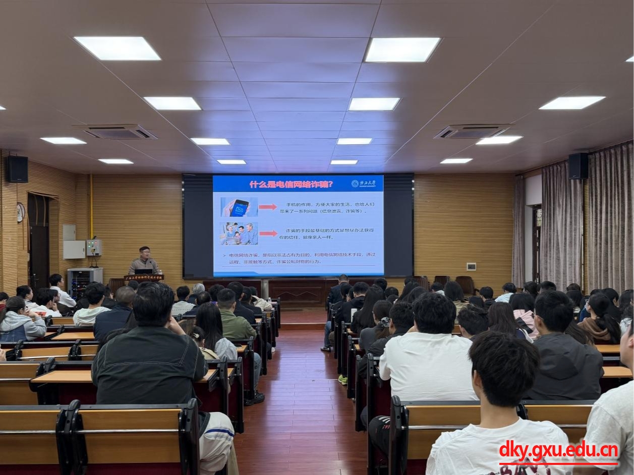 校保卫处金中州老师作电信网络诈骗防范主讲。他从电信诈骗的定义入手,系统梳理了校园高发的刷单返利、冒充客服退款、奖学金申领诈骗、兼职陷阱等类型与手法,结合真实案例拆解诈骗套路,并从“不轻信、不透露、不转账、多核实”三不一多原则出发,讲解了识别技巧、处置流程及求助渠道,引导师生提升反诈能力。