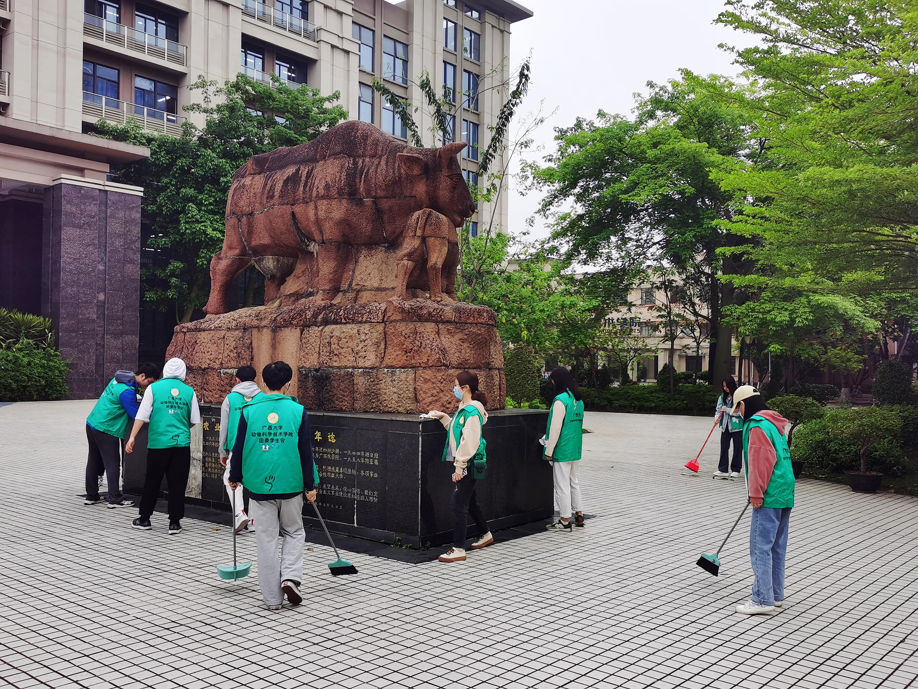 动物医学191团支部开展主题团日活动,清扫校园公共区域
