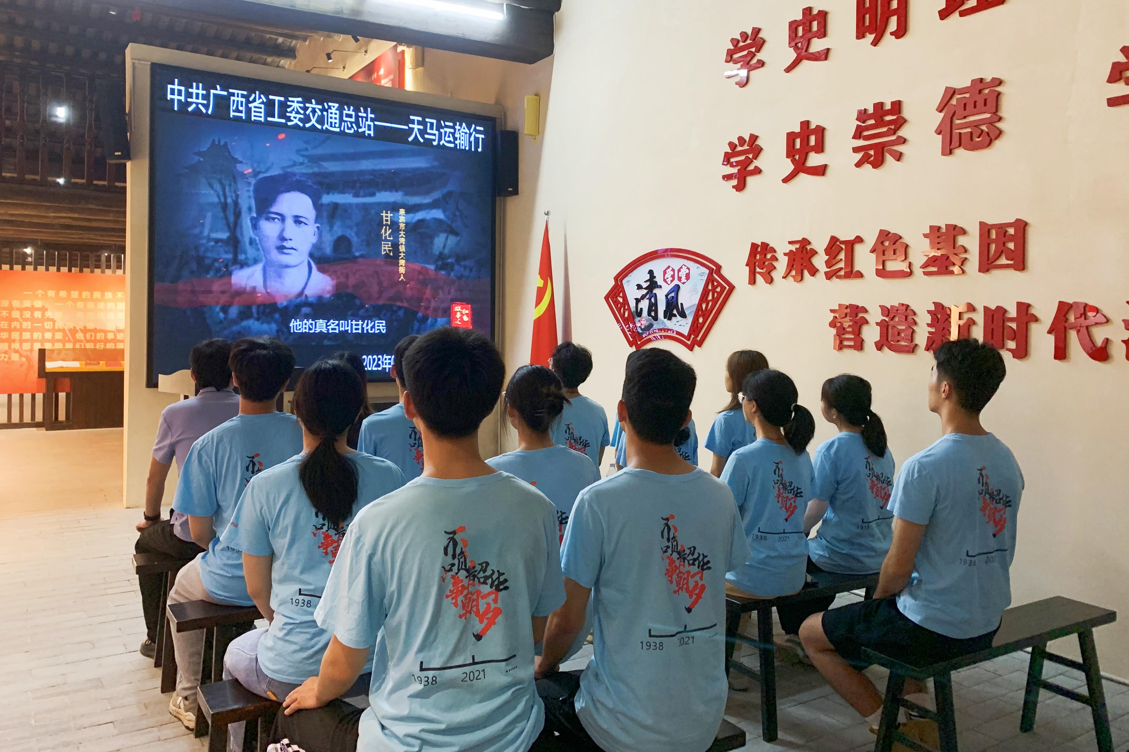 此外,实践团师生还前往了原中共广西省工委机关(天马运输行)旧址暨广西机要交通革命传统教育基地开展党史学习教育,并重温入团誓词。