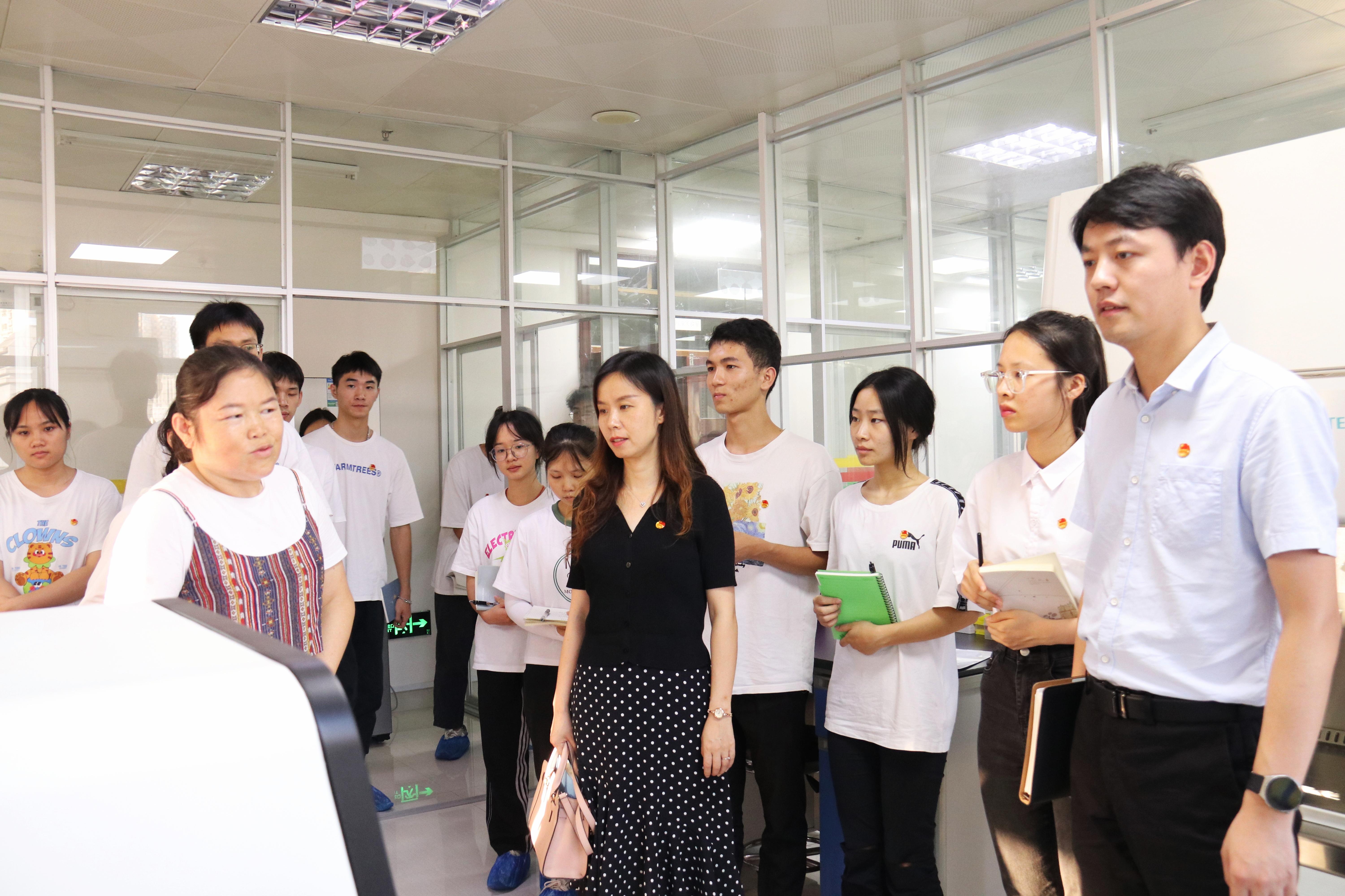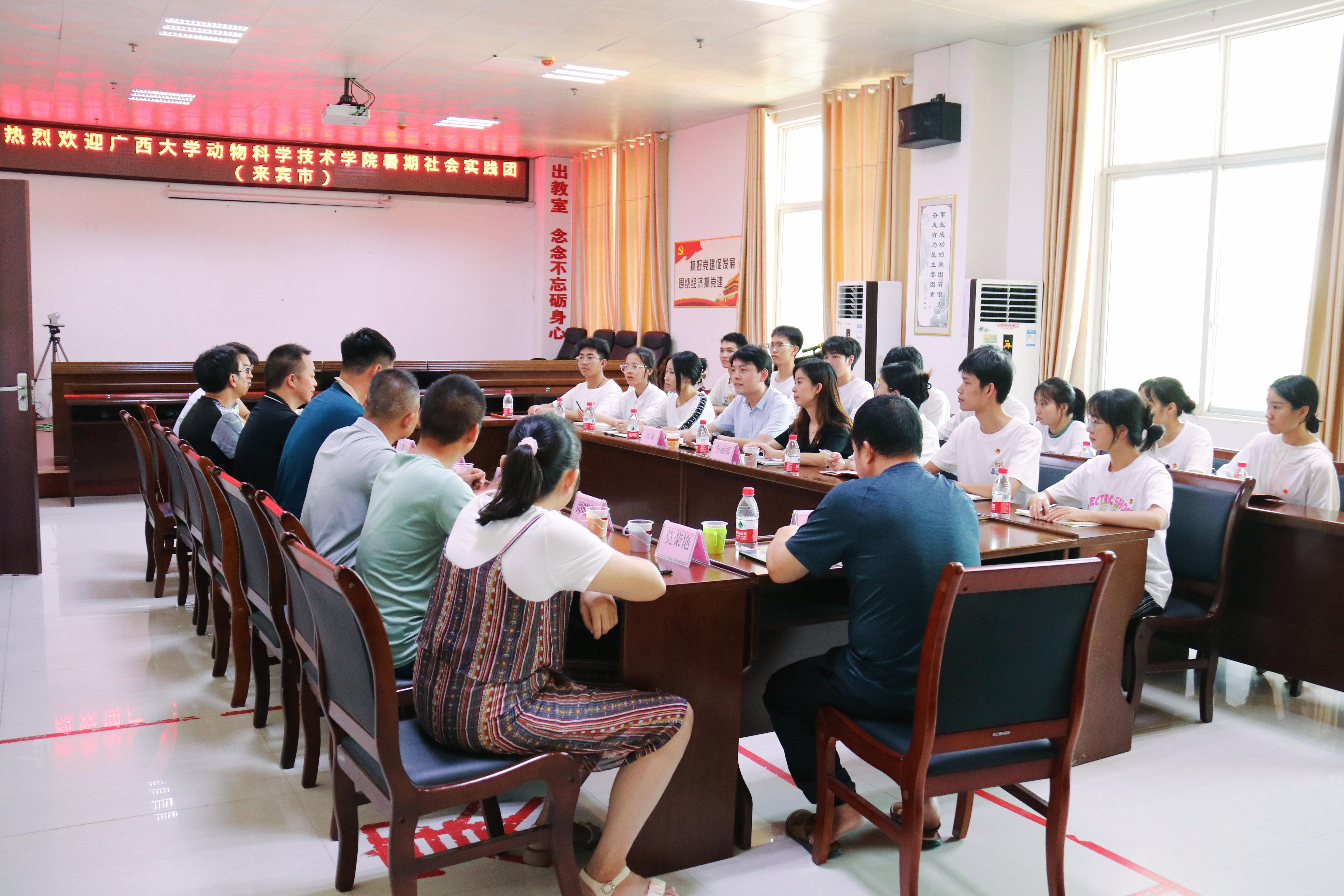 7日下午,实践团师生走访了来宾市动物疫病预防控制中心,同来宾市动物疫病预防控制中心主任王武,副主任郑子胜、陈胜文,以及各科室负责同志、校友代表进行了座谈交流,详细了解了来宾市畜牧产业发展现状以及乡村振兴配套支持政策,并实地参观了生物安全二级实验室。