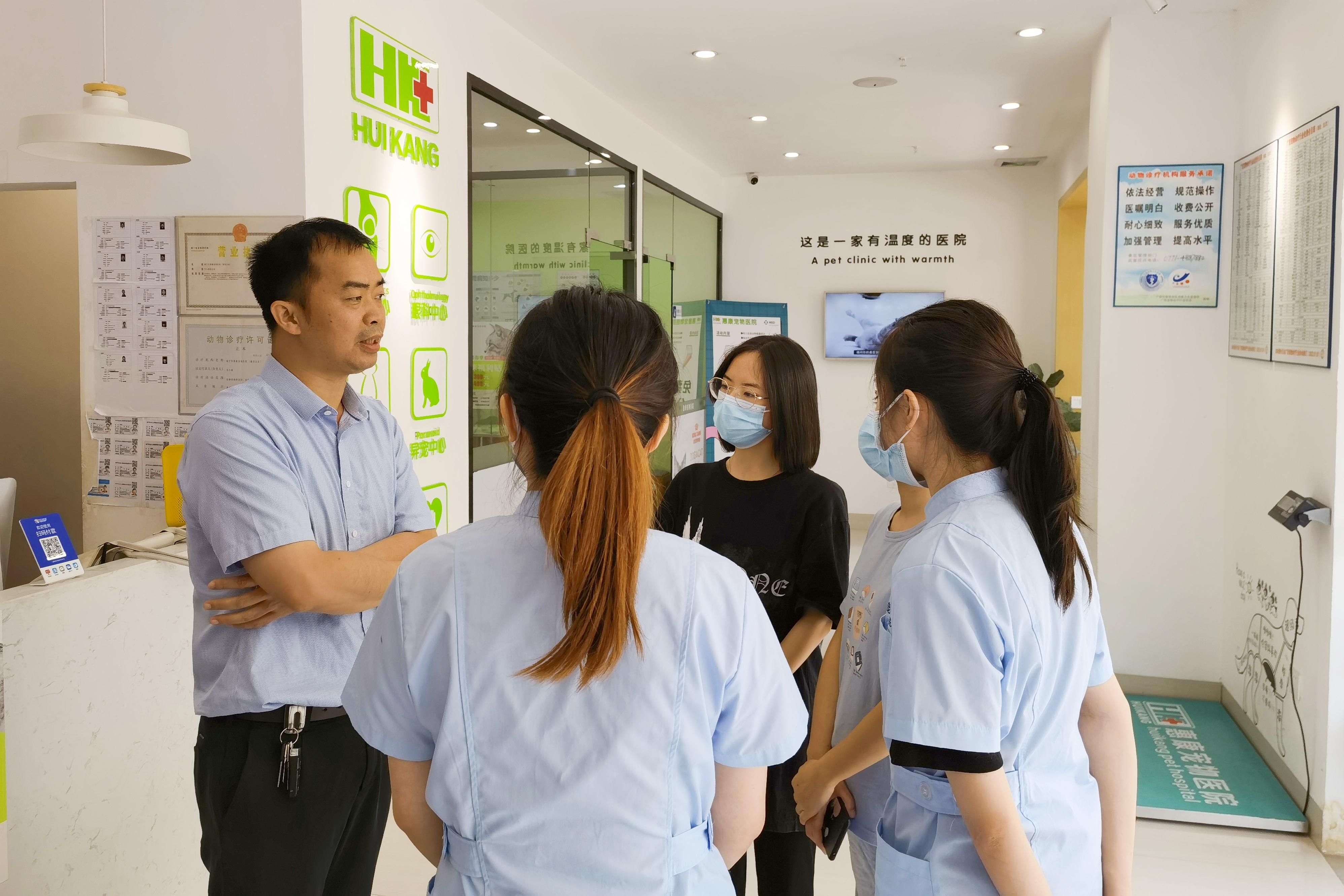 在实习单位负责人的带领下,学院一行参观了动物医院的诊疗环境和仪器设备,并与实习学生进行了亲切交谈,详细询问了解大家在学习、工作和生活方面的近况,同时鼓励同学们珍惜此次实习机会,将所学理论知识用于实际操作,积累实践经验、提升职业技能,真正做到学有所获、学以致用、学用相长。实习单位高度赞扬了实习学生的在岗表现,认为他们工作认真负责、专业技能扎实,具有勤学好问、吃苦耐劳的优良品质。