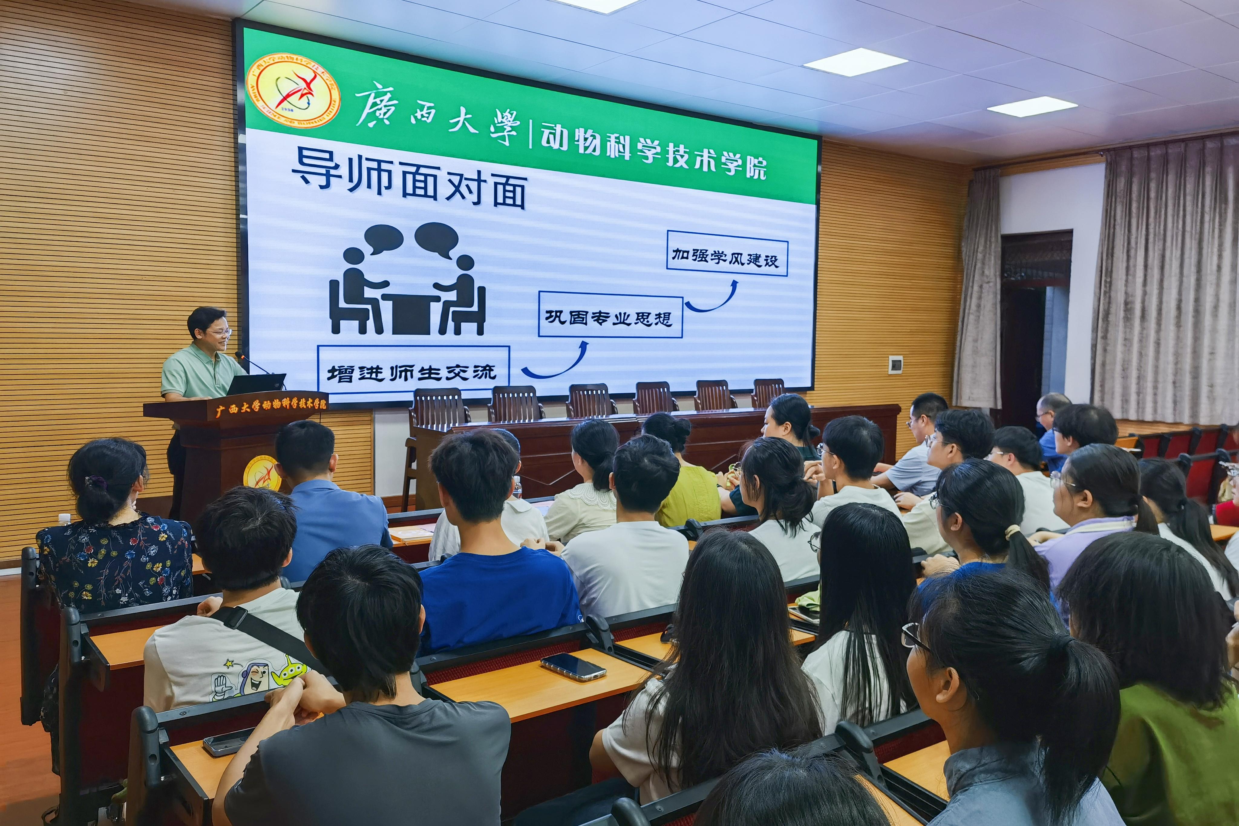 为巩固专业思想,加强学风建设,增进师生交流,营造学术氛围,7月5日晚上,威廉官网中国官方网站在学院318报告厅举办第二季“导师面对面”学术沙龙(第二场),邀请何家康、韦祖樟、陈樱、王晓晔、于美玲、方芳、韦懿仙7位导师嘉宾到场分享个人经历、人才培养和科研方向,并与学生互动交流,共同探讨学业规划、职业发展和个人成长。动物医学专业2022级全体本科生参加此次活动。