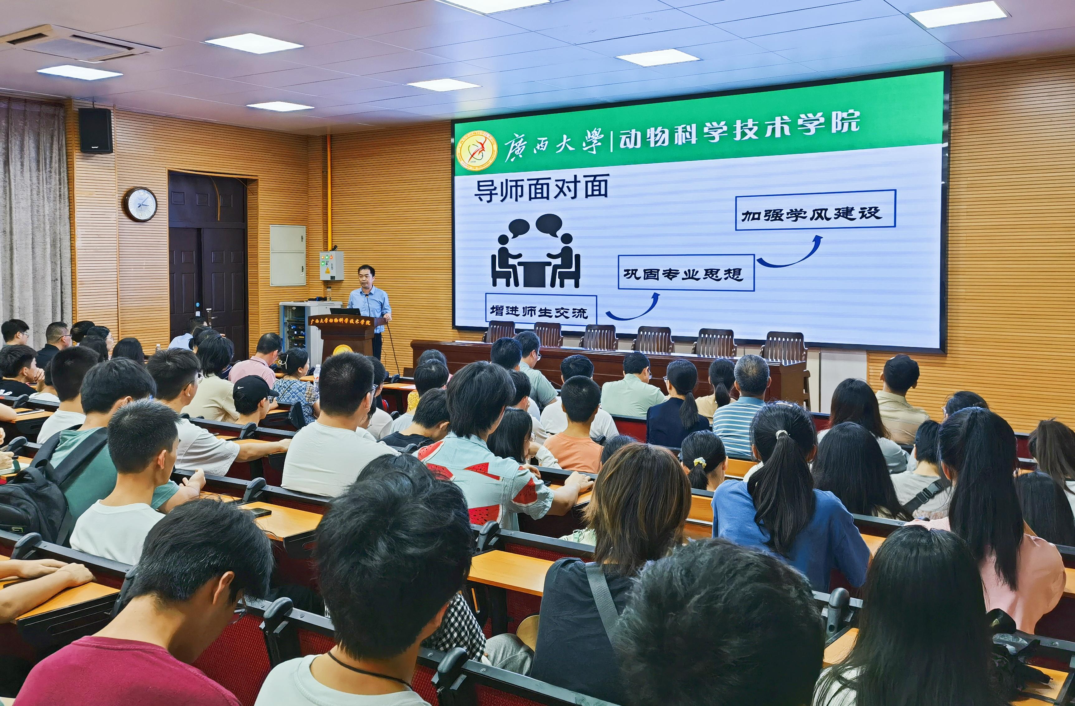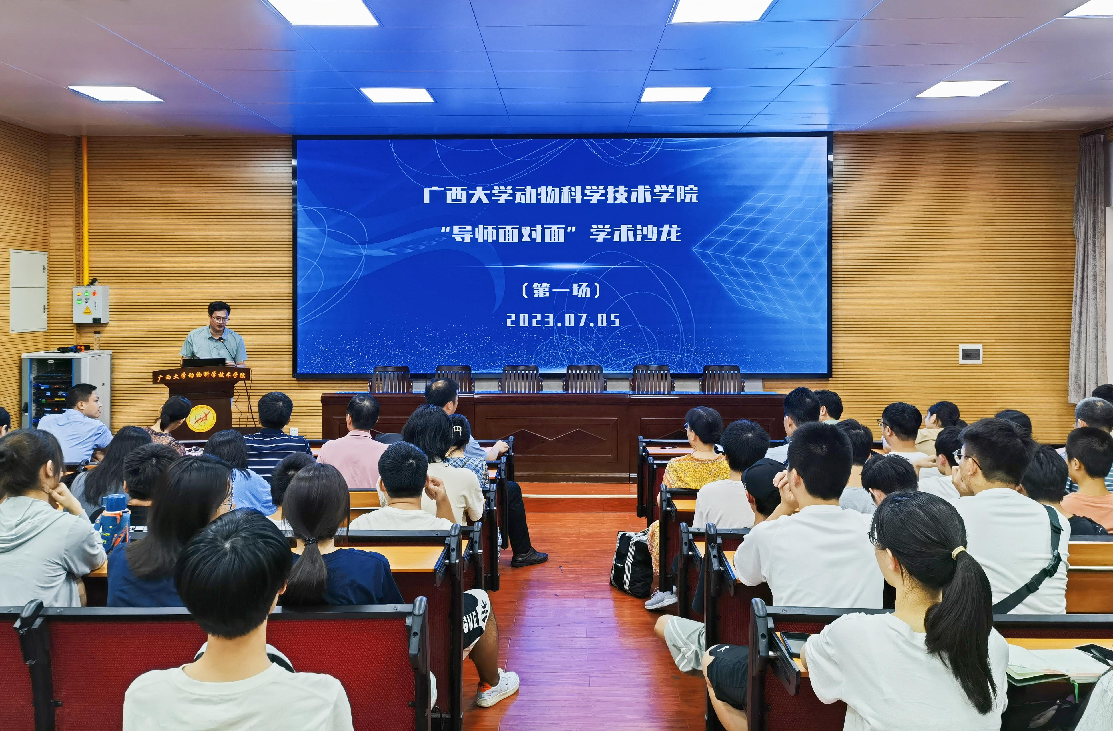 为巩固专业思想,加强学风建设,增进师生交流,营造学术氛围,7月5日下午,威廉官网中国官方网站在学院318报告厅举办第二季“导师面对面”学术沙龙(第一场),邀请石德顺、陆阳清、陆凤花、蒋钦杨、胡传活、梁兴伟、李一星、潘红平、林波、黄艳娜、宋子仪、黄洁萍、刘兴廷、孔志伟、王健、张瑞门、吴昱果17位导师嘉宾到场分享个人经历、人才培养和科研方向,并与学生互动交流,共同探讨学业规划、职业发展和个人成长。动物科学专业2022级全体本科生参加此次活动。