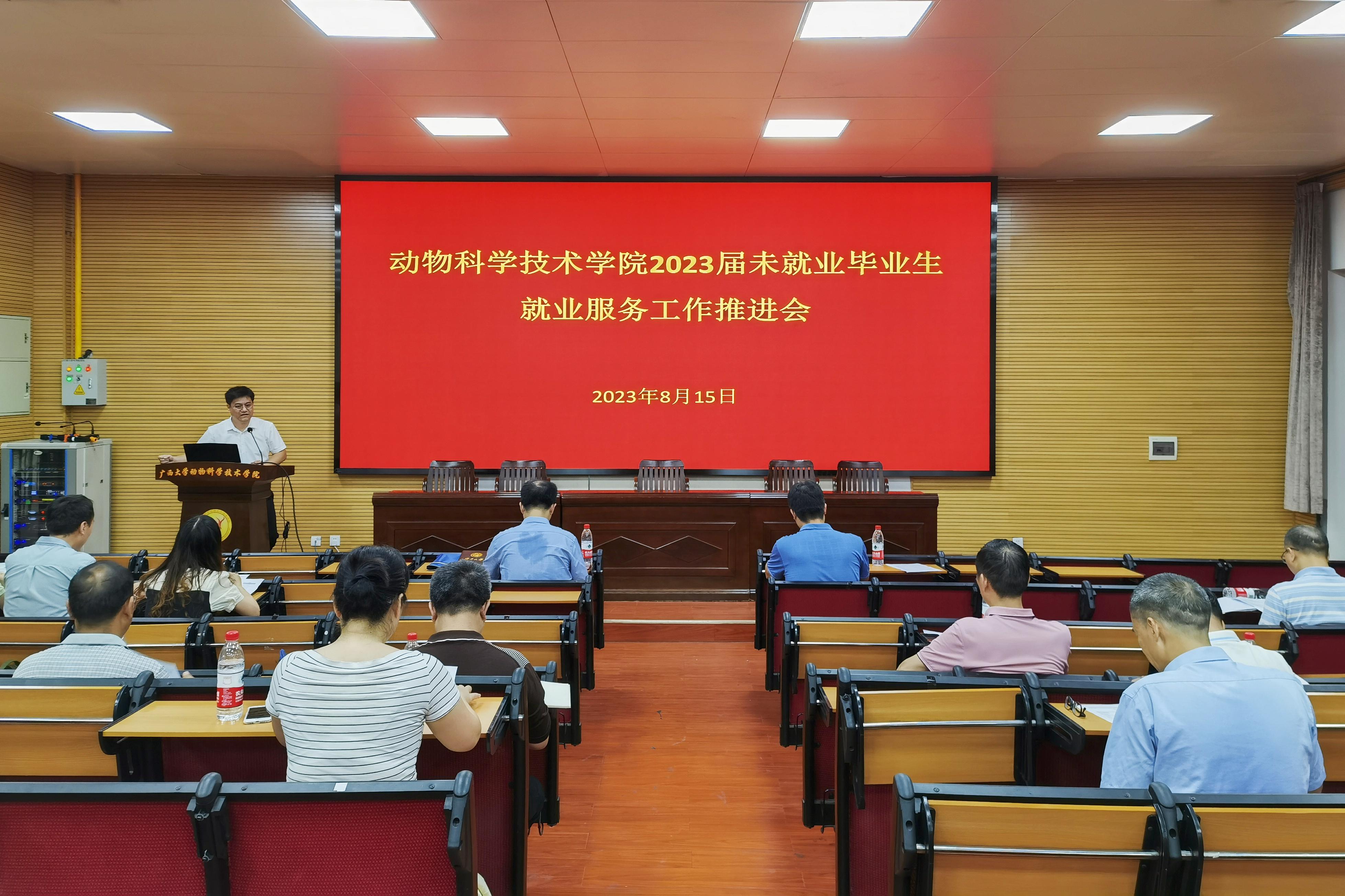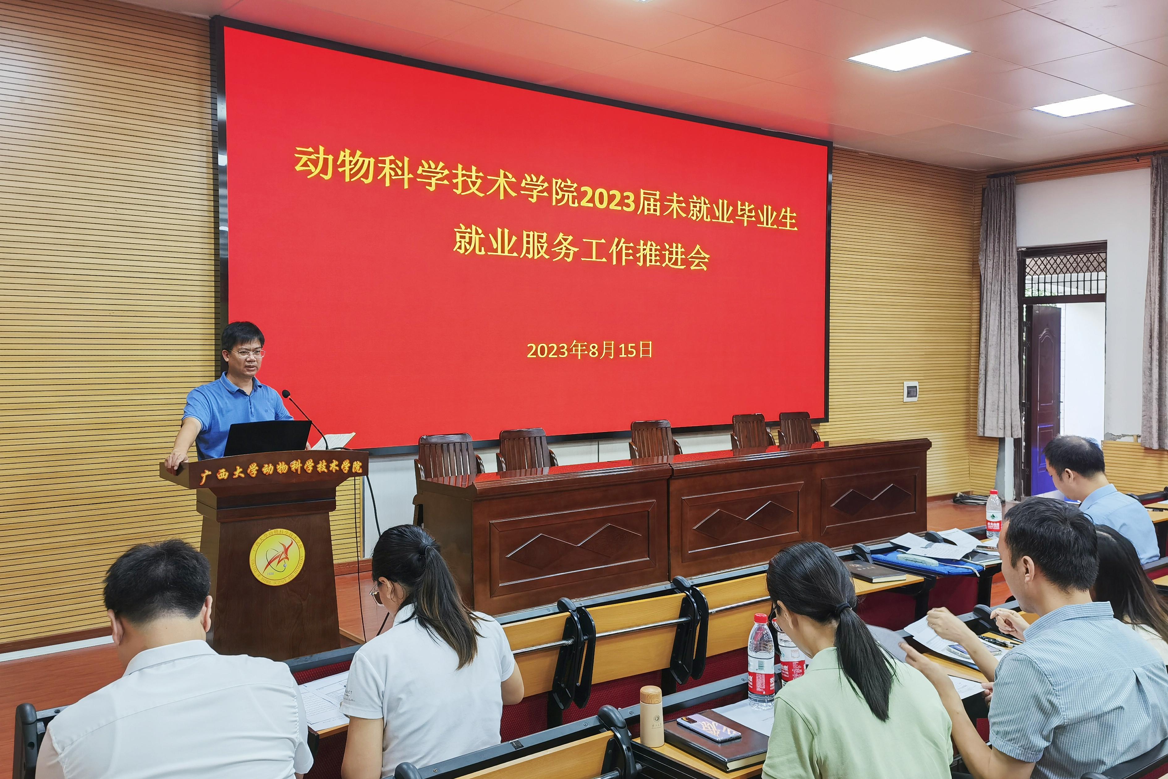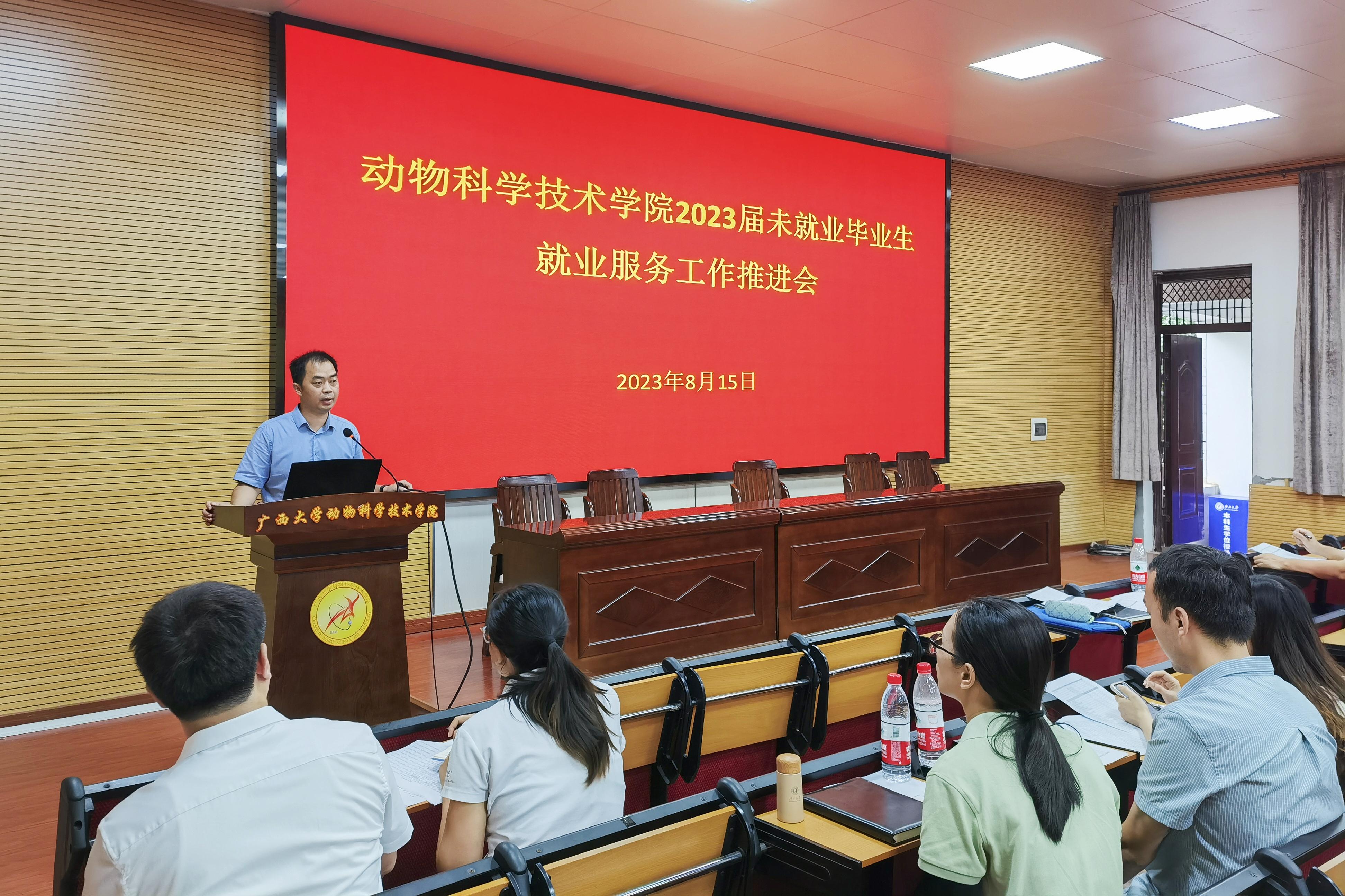 为贯彻落实党中央、国务院关于高校毕业生就业工作的决策部署,全力推进毕业生更加充分更高质量就业,8月15日上午,威廉官网中国官方网站在学院318报告厅召开2023届未就业毕业生就业服务工作推进会。威廉官网中国官方网站党委书记韦小强,院长陆阳清,党委副书记沙建,副院长宁鹏飞、韦祖樟,以及专职辅导员、研究生导师、毕业班级班主任参加会议。
