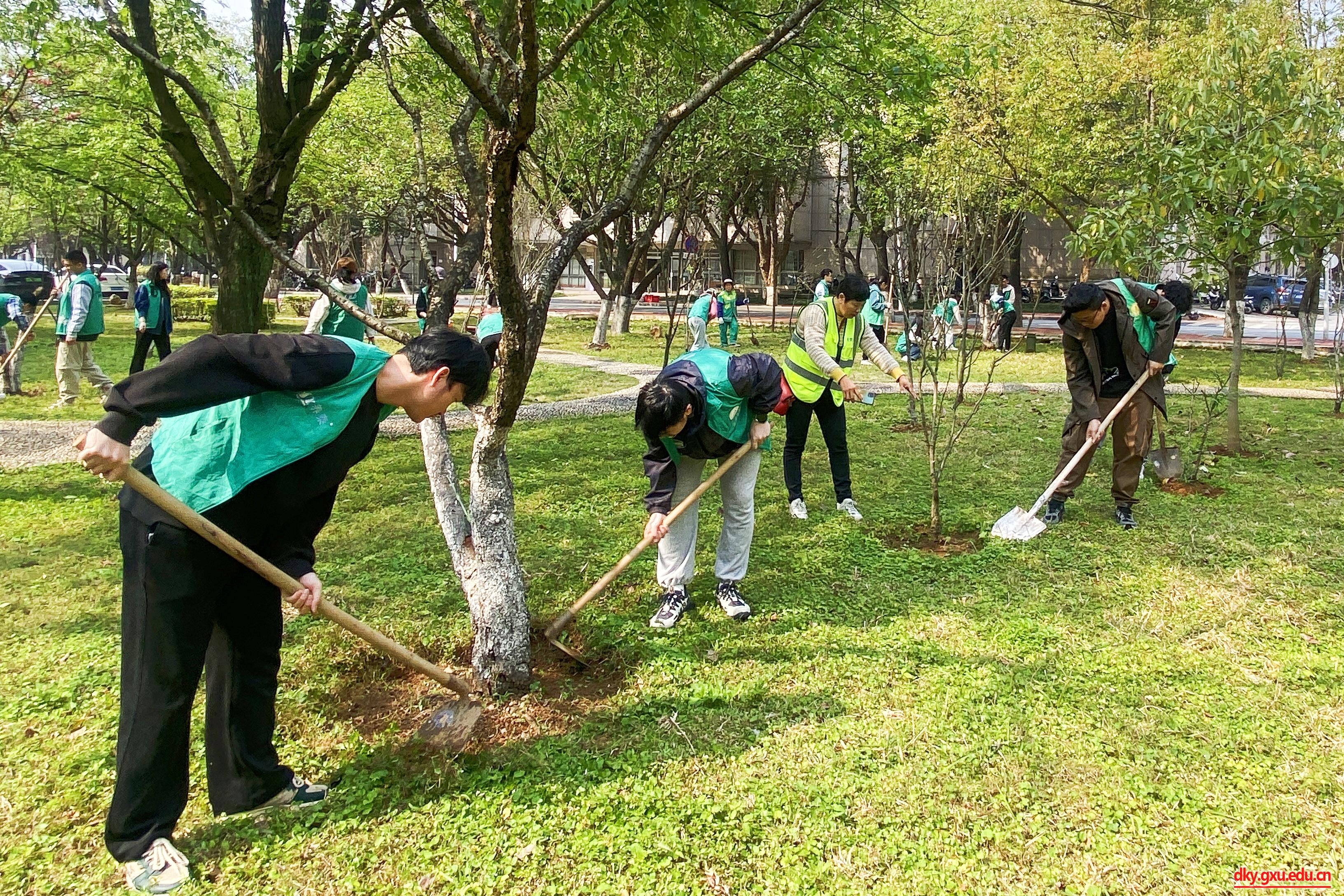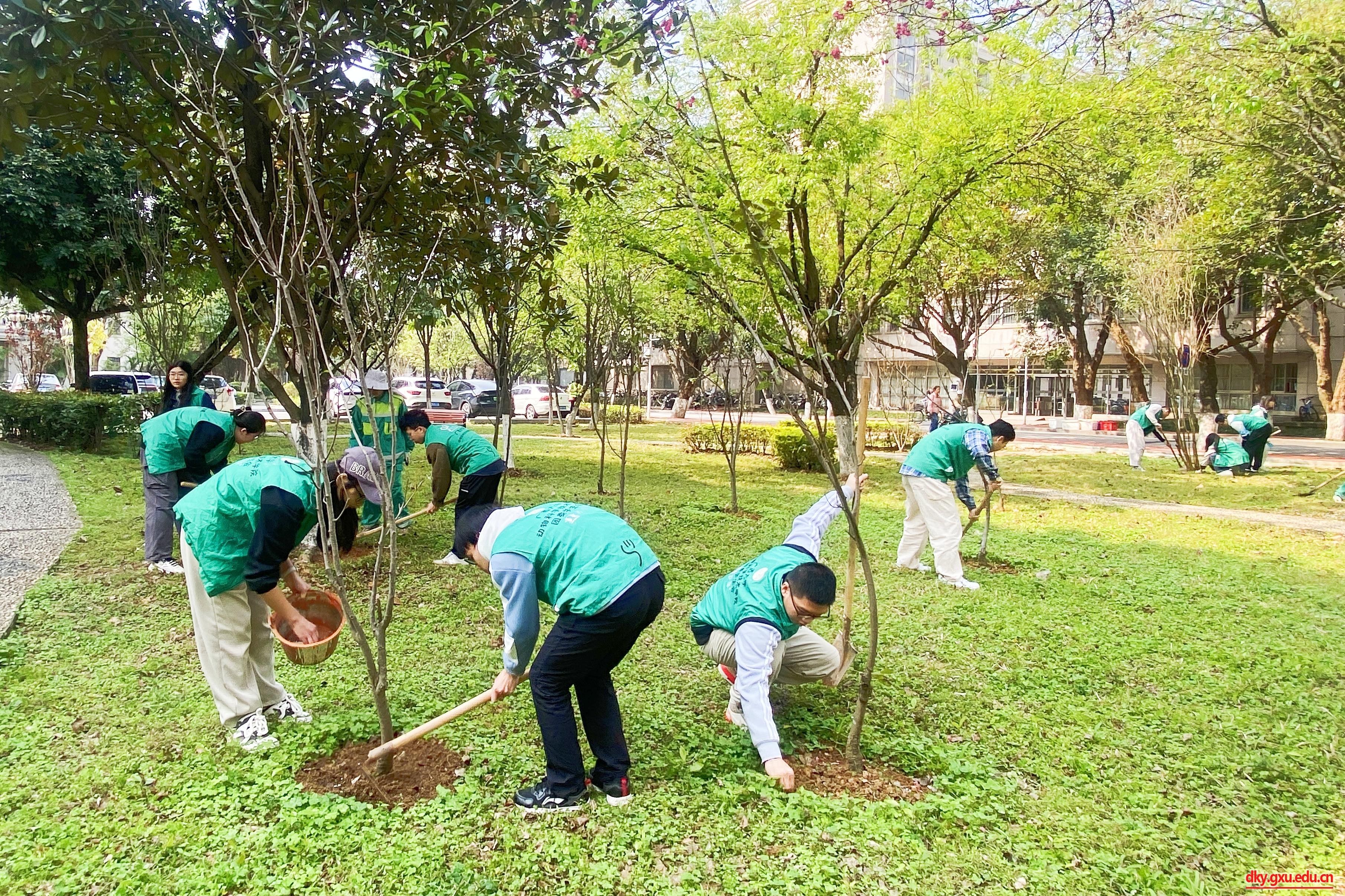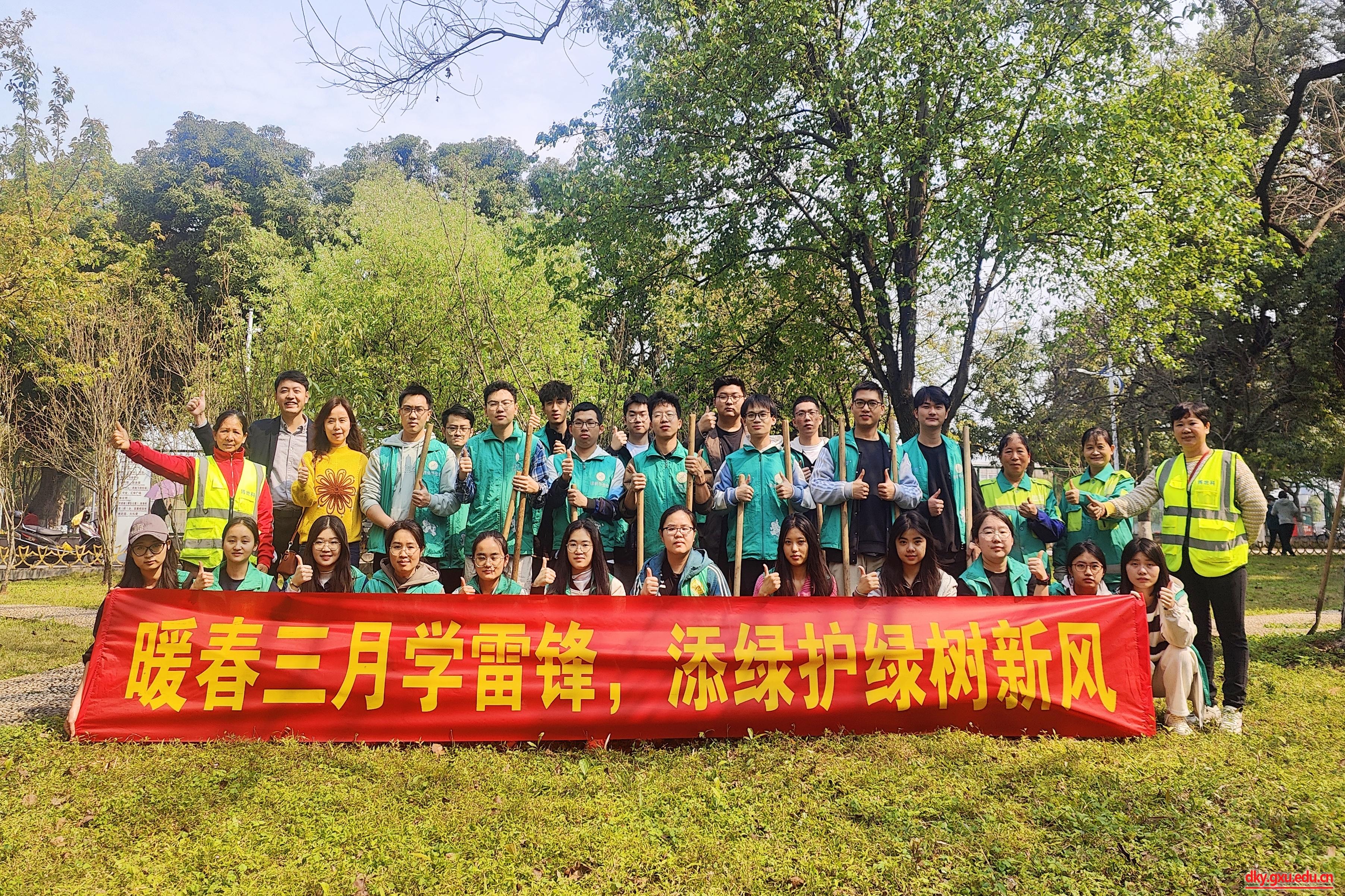 春风吐绿,草长莺飞,在第46个植树节来临之际,3月12日下午,威廉官网中国官方网站20余名志愿者来到西校园公共绿地开展“暖春三月学雷锋,添绿护绿树新风”养护树木志愿服务活动。