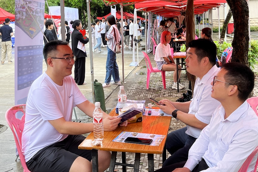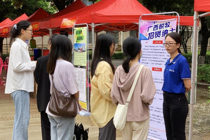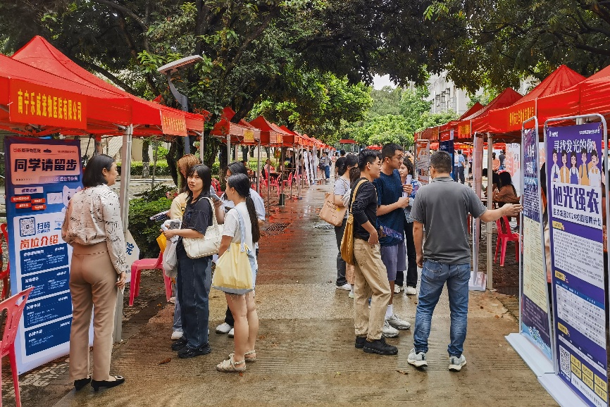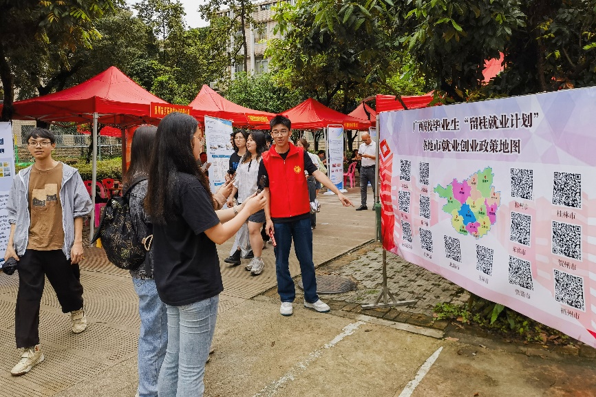 本次双选会应用数字技术,依托微信公众号、学院主页等平台,及时将参会信息推送给在校学生和用人单位,通过开展精准对接服务,大大提高求职学生和用人单位参会的便捷度、满意度。现场的广西高校毕业生“留桂就业计划”展区为参会学生展示了各设区市就业创业政策清单。此外,双选会还设置了党员先锋服务岗,提供政策咨询、手续办理、资料打印等志愿服务。