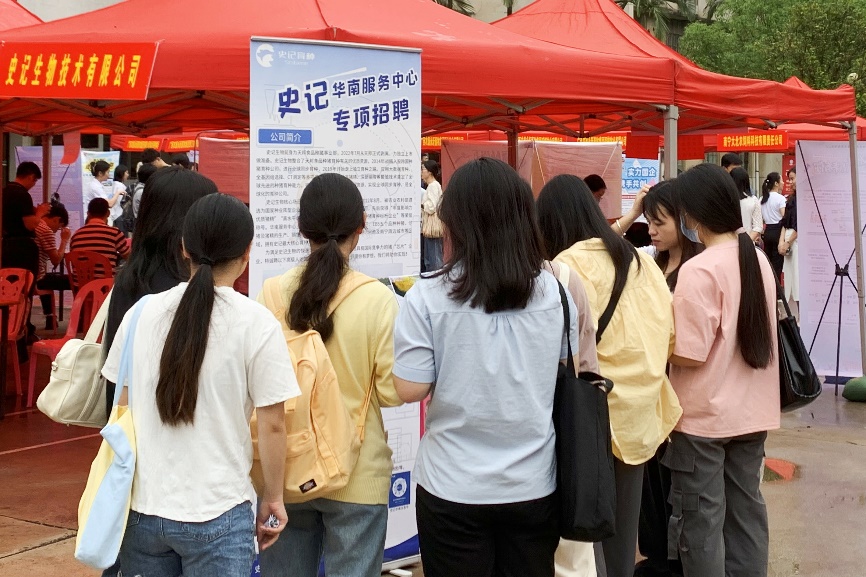 活动现场气氛热烈,来自区内高校的动物科学、动物医学以及其他专业的800余名学生参加了此次双选会,其中既有精心准备、蓄势待发的应届毕业生,也有期待了解行业发展和人才需求的其他在校生。大家认真寻找意向单位、了解需求信息、积极投递简历,并与用人单位就工作内容、福利待遇、发展前景等方面进行细致沟通。目前,部分毕业生已与用人单位达成初步就业意向,正在有条不紊地办理签约手续。