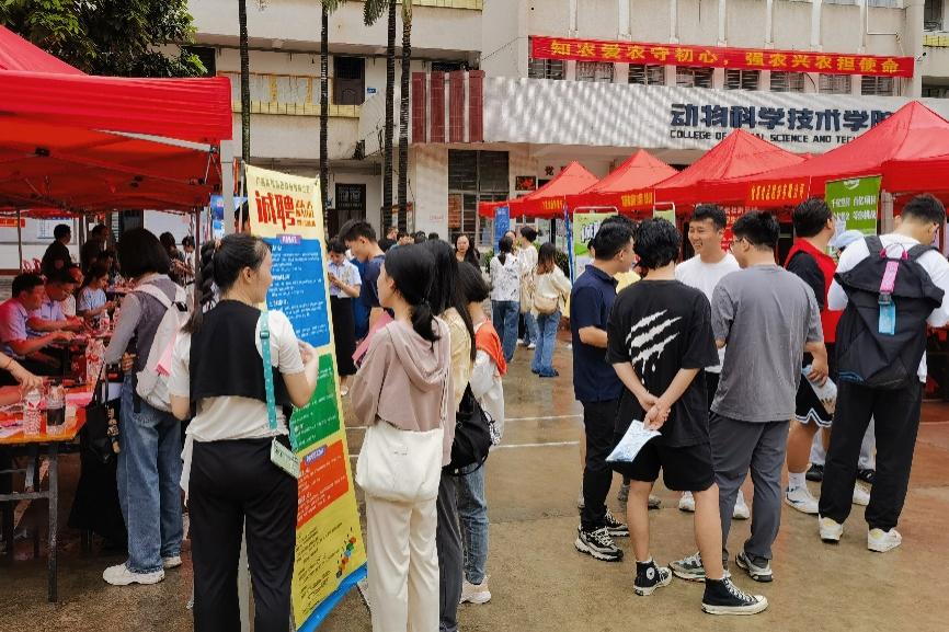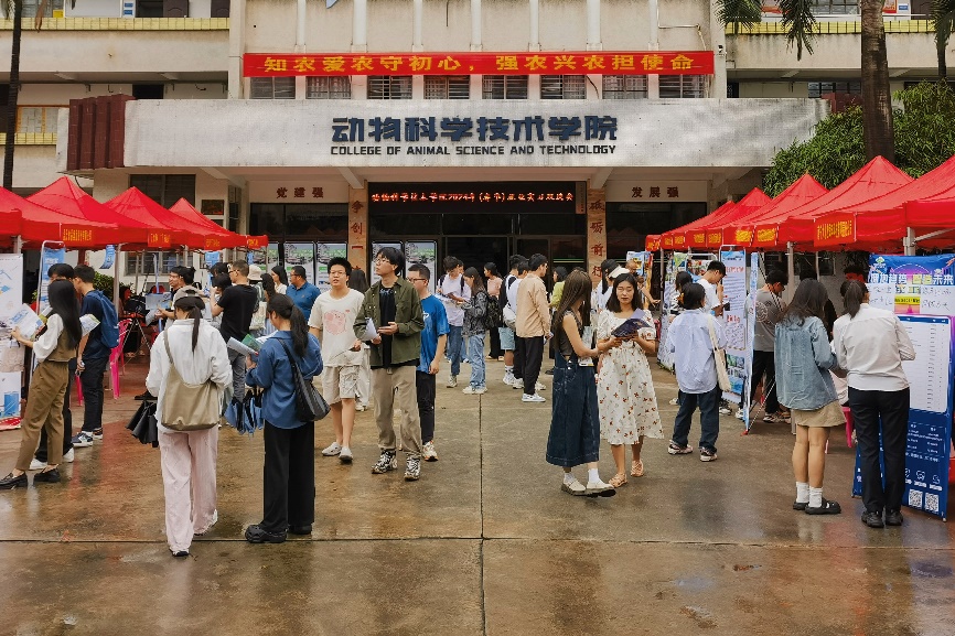 本次双选会邀请了广西农垦、扬翔股份、正大集团、力源集团、温氏集团、双胞胎集团、大北农集团、牧原食品、瑞鹏宠物医疗等来自全国各地的50余家用人单位来校选聘英才,涵盖了农业、制造、教育、科技、医疗等多个行业领域,提供了生产管理、技术服务、产品研发、市场营销等1010个招聘岗位,涵盖本科、硕士和博士多个层次,为学生就业、实习带来了更为广阔的选择空间和发展平台。