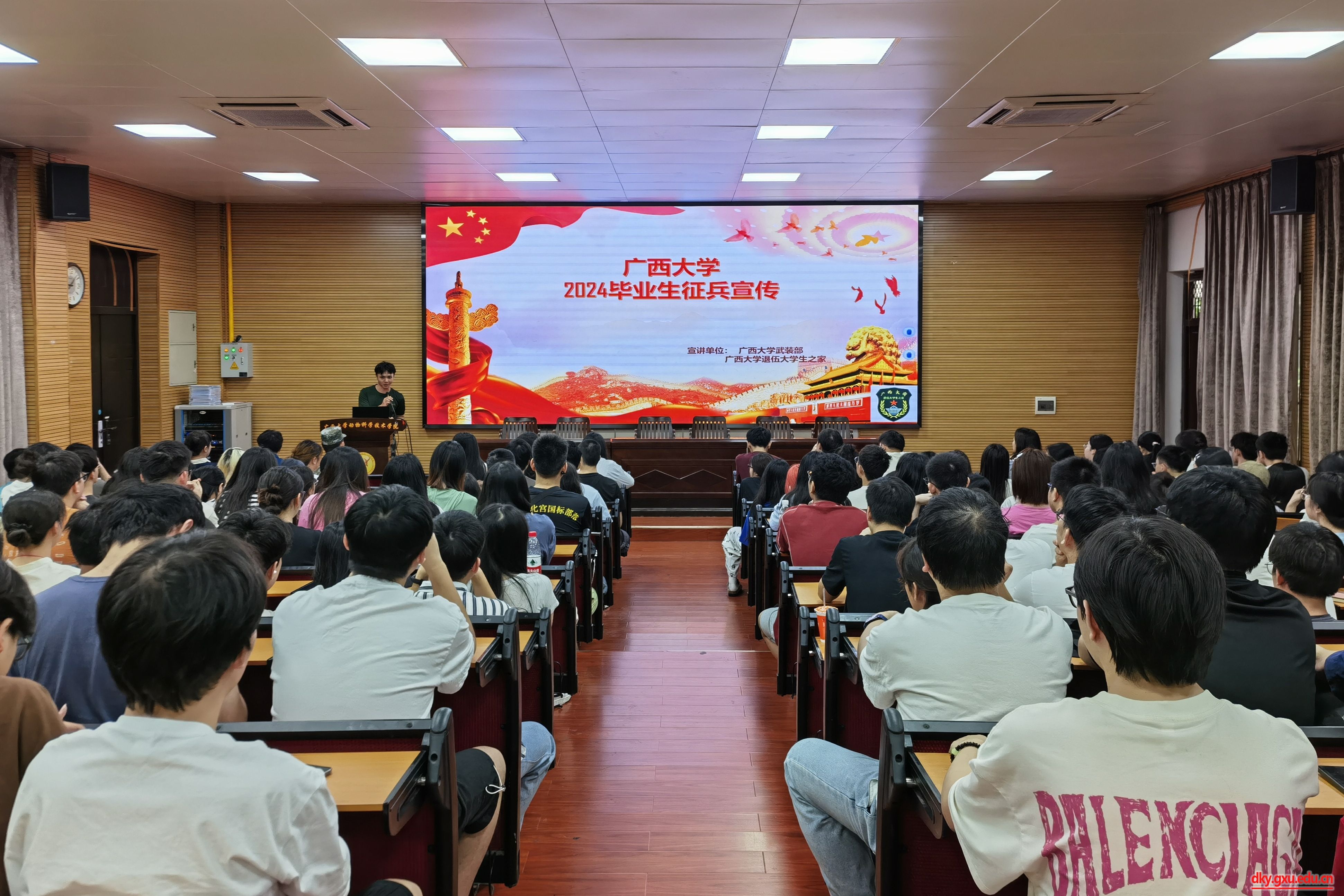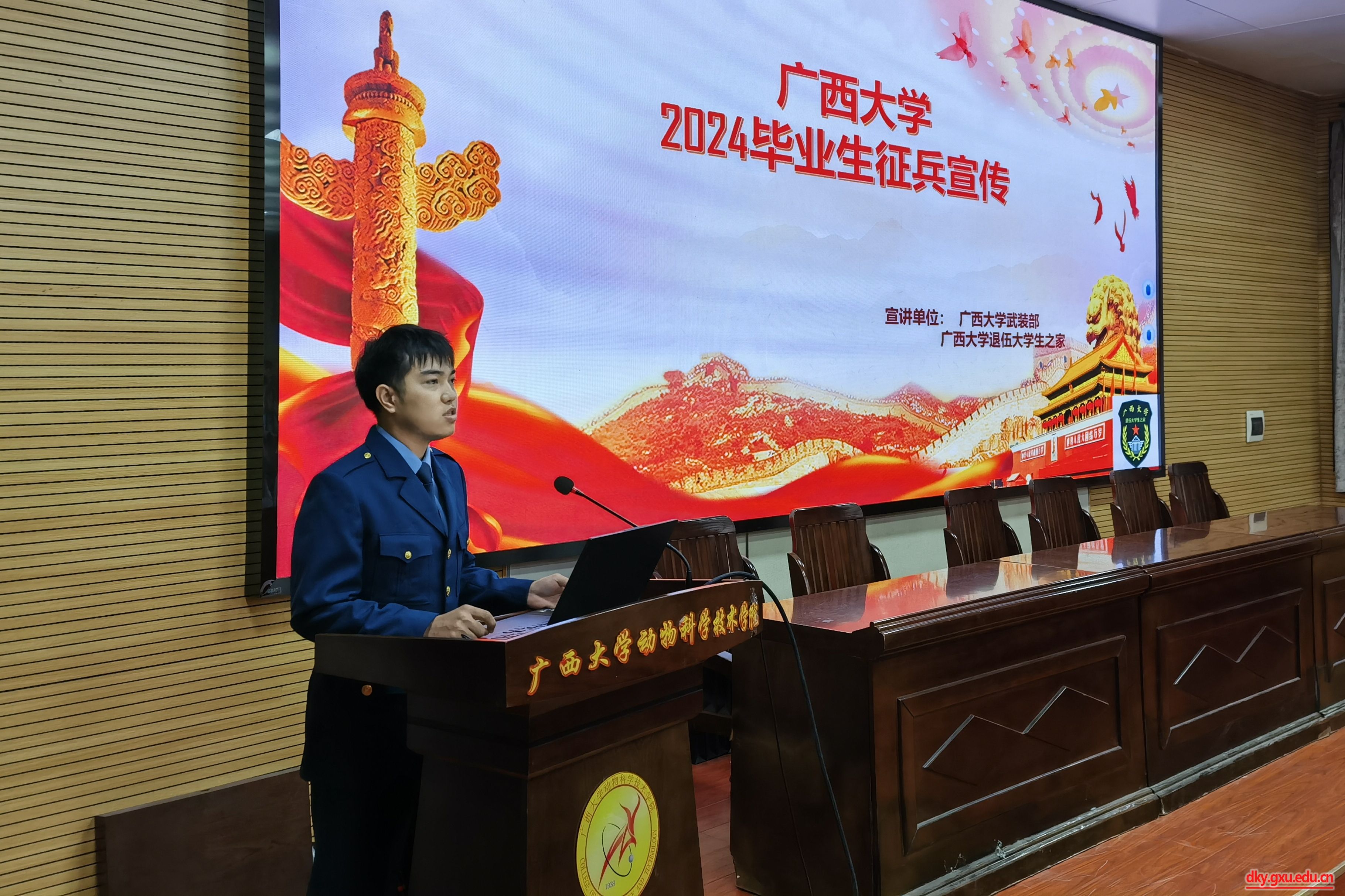 6月6日上午,威廉官网中国官方网站在318报告厅举行2024年征兵动员会议,校武装部磨奕君和退伍大学生代表受邀到场为同学们详细讲解征兵政策。威廉官网中国官方网站团委副书记刘诚,辅导员马朝阳和2024届毕业生参加此次会议。
