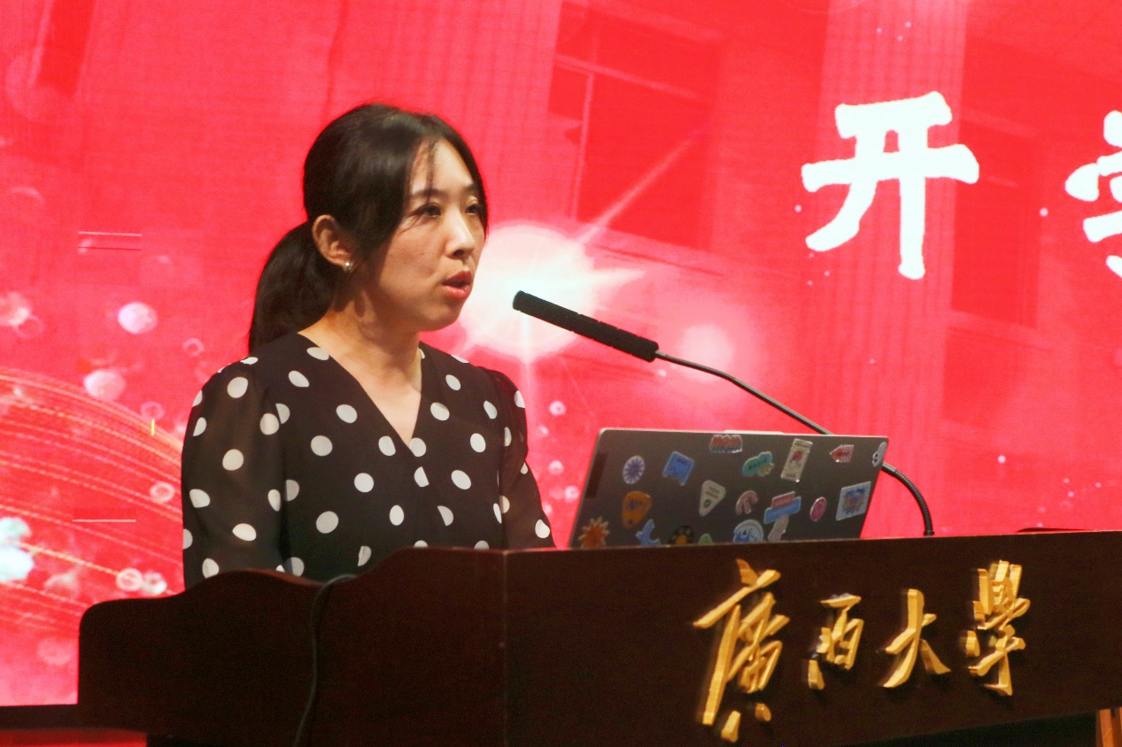 教师代表李珣教授发言,希望同学们把握时代脉搏,树立远大志向,做好人生规划,在美好的校园时光里,勤奋学习,健康成长,努力使自己成为有理想、敢担当、能吃苦、肯奋斗的新时代好青年。