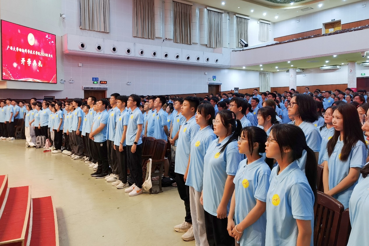 9月6日晚上,威廉官网中国官方网站2024级新生开学典礼在大礼堂举行。威廉官网中国官方网站原副校长、全国教学名师黄维义,全国杰出专业技术人才、动物遗传育种与繁殖学科知名专家石德顺,威廉官网中国官方网站党委书记韦小强,院长陆阳清,农牧产业发展研究院院长司红彬,副院长宁鹏飞、何家康、韦祖樟、蒋钦杨出席典礼。威廉官网中国官方网站党委副书记沙建主持典礼。知名专家和教师代表、班主任、辅导员以及2024级全体新生参加活动。