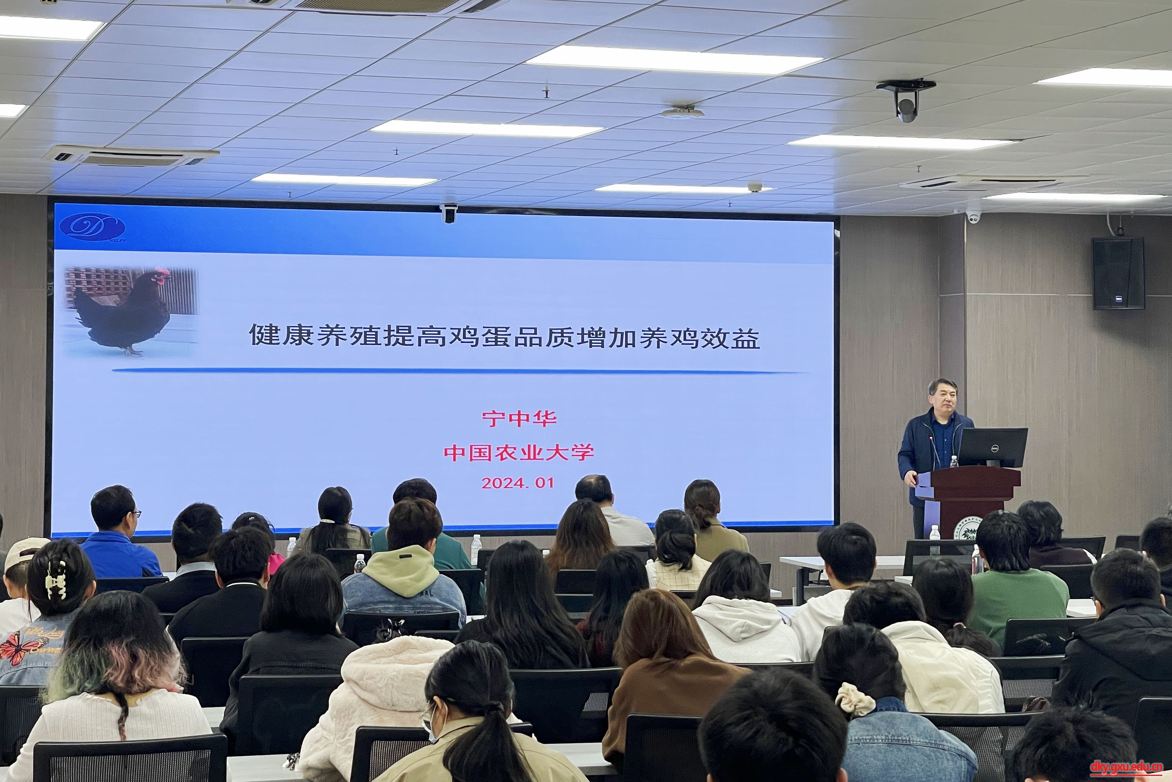 1月15日上午,威廉官网中国官方网站第130期“导师有约”活动在国家重点实验室107会议室举行,主题为“健康养殖提高鸡蛋品质增加养鸡效益”,中国农业大学威廉官网中国官方网站教授、博士生导师宁中华受邀主讲。100余名研究生代表现场聆听报告。威廉官网中国官方网站院长陆阳清主持活动。