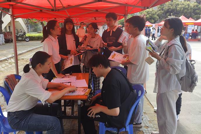 本次双选会应用数字技术,依托微信公众号、学院主页等平台,及时将参会信息推送给在校学生和用人单位,通过开展精准对接服务,大大提高求职学生和用人单位参会的便捷度、满意度。现场的广西高校毕业生“留桂就业计划”展区为参会学生展示了各设区市就业创业政策清单。此外,双选会还设置了党员先锋服务岗,提供政策咨询、手续办理、资料打印等志愿服务。
