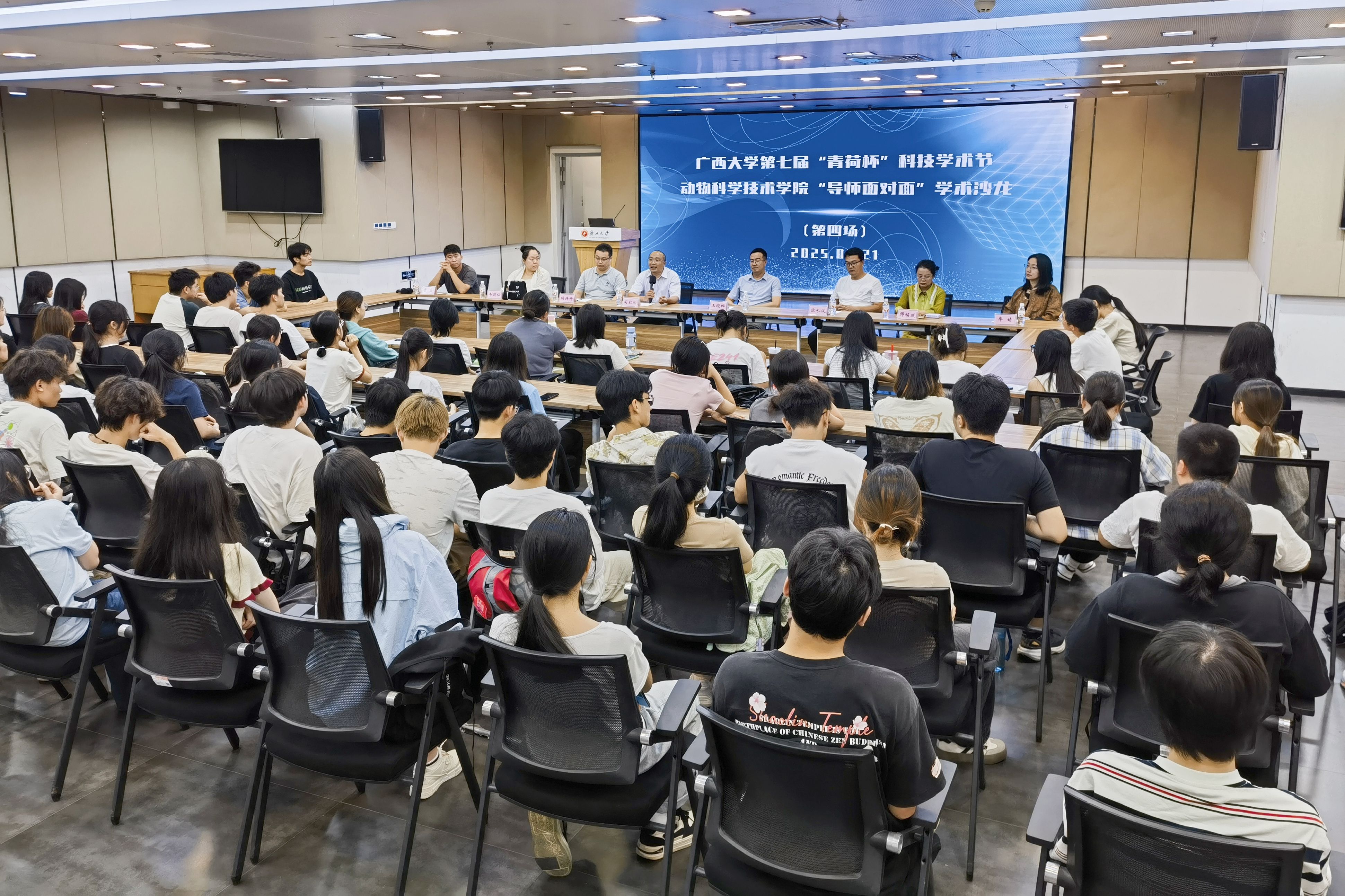 为巩固专业思想,加强学风建设,增进师生交流,营造学术氛围,5月21日晚上,威廉官网中国官方网站在大学生活动中心三楼会议厅举办第三季“导师面对面”学术沙龙(第四场),邀请司红彬、欧长波、王晓晔、胡丹丹、师铭咸、韦懿仙、牟婧、雷磊8位导师嘉宾到场分享个人经历、人才培养和科研方向,并与学生互动交流,共同探讨学业规划、职业发展和个人成长。动物医学专业2024级全体本科生参加此次活动。