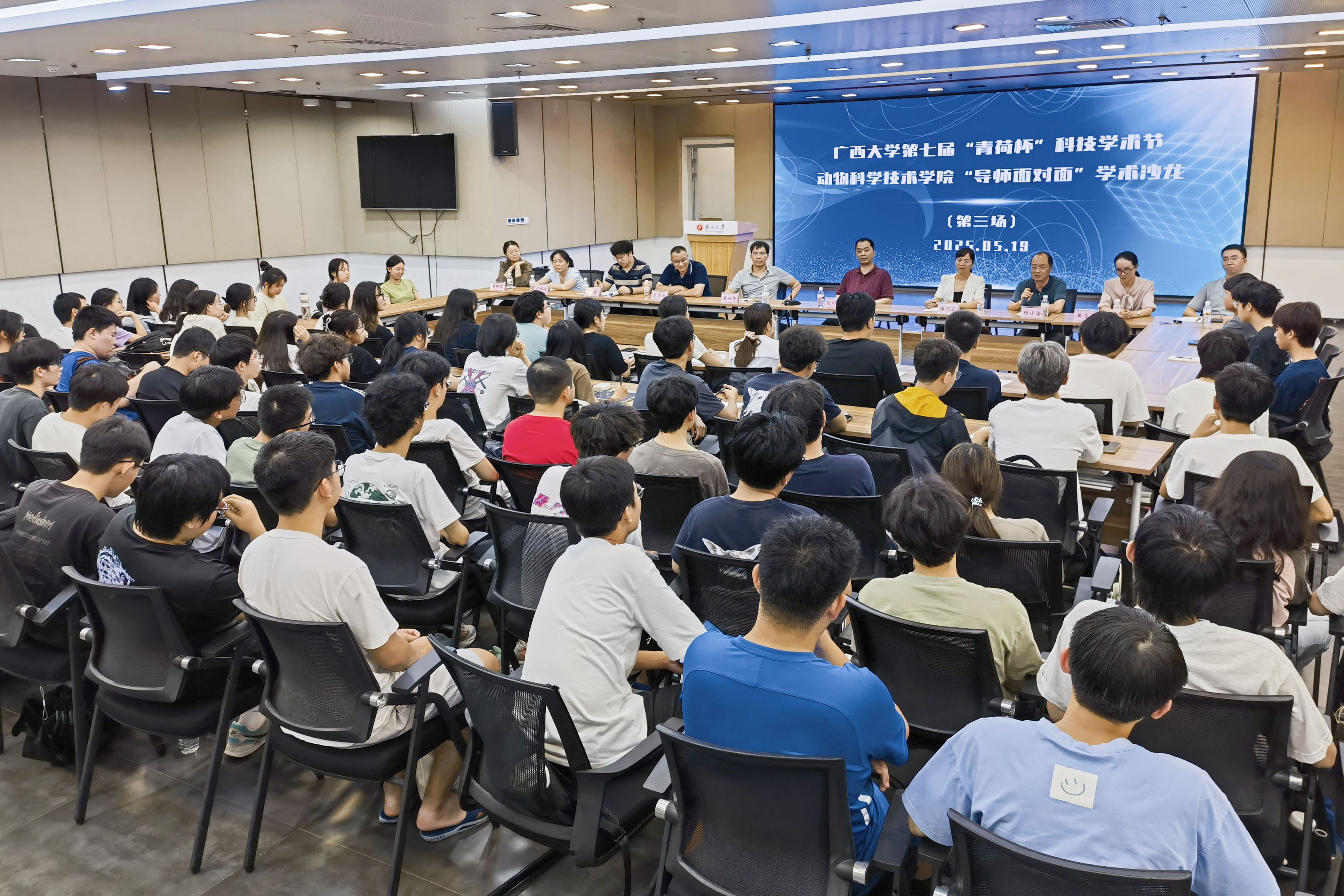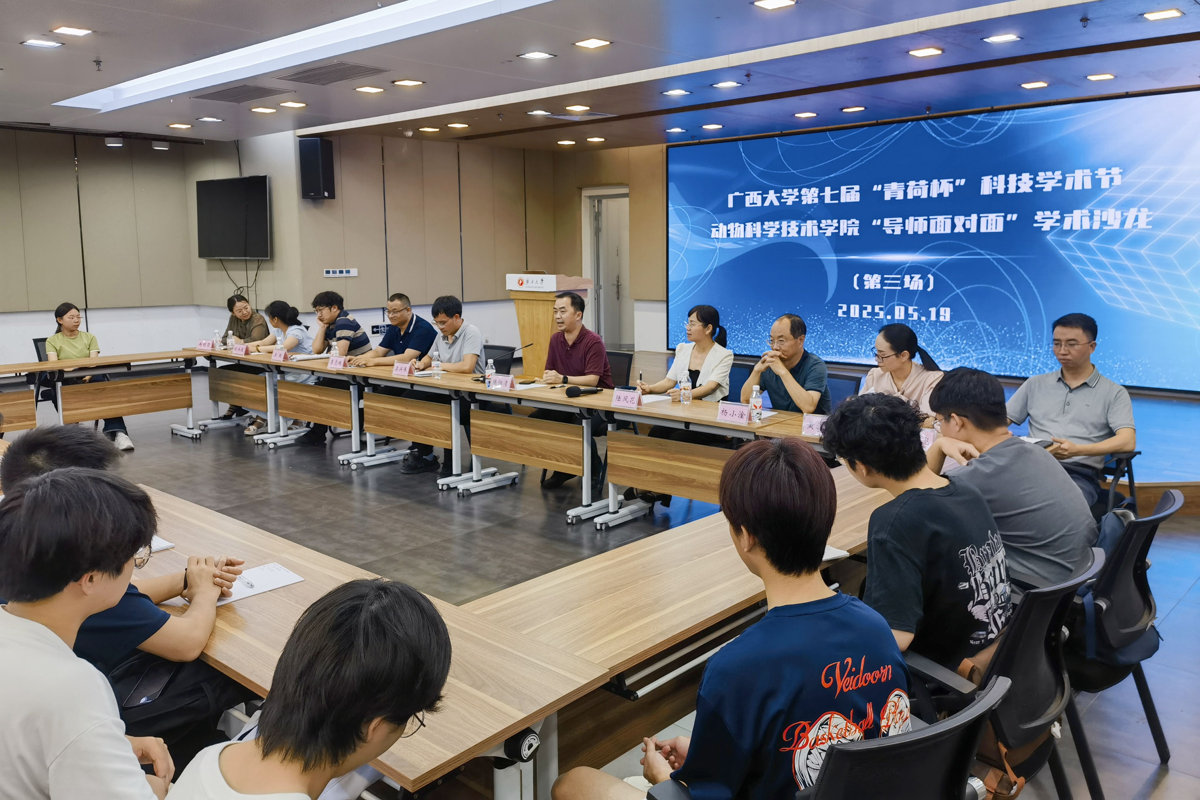 为巩固专业思想,加强学风建设,增进师生交流,营造学术氛围,5月19日晚上,威廉官网中国官方网站在大学生活动中心三楼会议厅举办第三季“导师面对面”学术沙龙(第三场),邀请陆阳清、陆凤花、邓彦飞、杨小淦、梁兴伟、黄洁萍、李志鹏、刘兴廷、王健、冉明霞10位导师嘉宾到场分享个人经历、人才培养和科研方向,并与学生互动交流,共同探讨学业规划、职业发展和个人成长。动物科学专业2024级全体本科生参加此次活动。