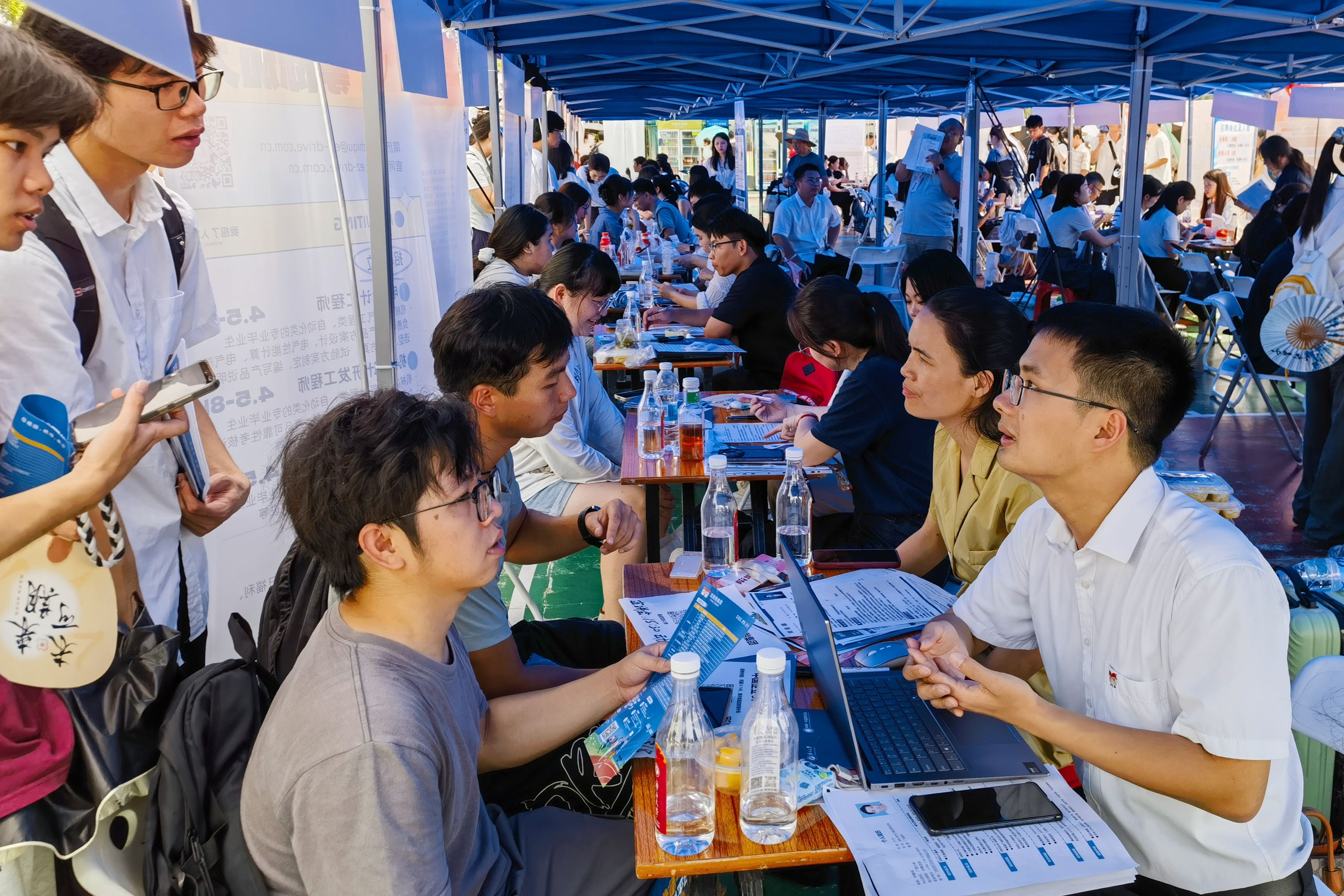 辅导员、班主任在活动现场开展就业指导和服务,给毕业生们保驾护航,并主动对接用人单位,积极参与校企洽谈,进一步开拓就业渠道和岗位,全力帮助毕业生实现高质量就业。