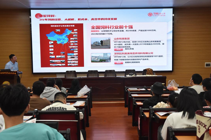作为学院拓宽就业渠道、提升就业质量的重要举措,本次专场宣讲会精准对接农牧行业优质企业资源,为学子们搭建了与行业龙头企业直接对话的平台。宣讲会伊始,唐人神集团负责人以企业发展历程为切入点,系统介绍了集团在农牧产业的核心业务布局、行业地位及发展前景,让在场学子对企业的整体实力有了全面认知。负责人重点阐释了集团“爱、信任、承诺”的核心价值观,通过企业社会责任实践案例展现了企业文化内涵,引发在场学子的强烈共鸣,赢得一致好评。