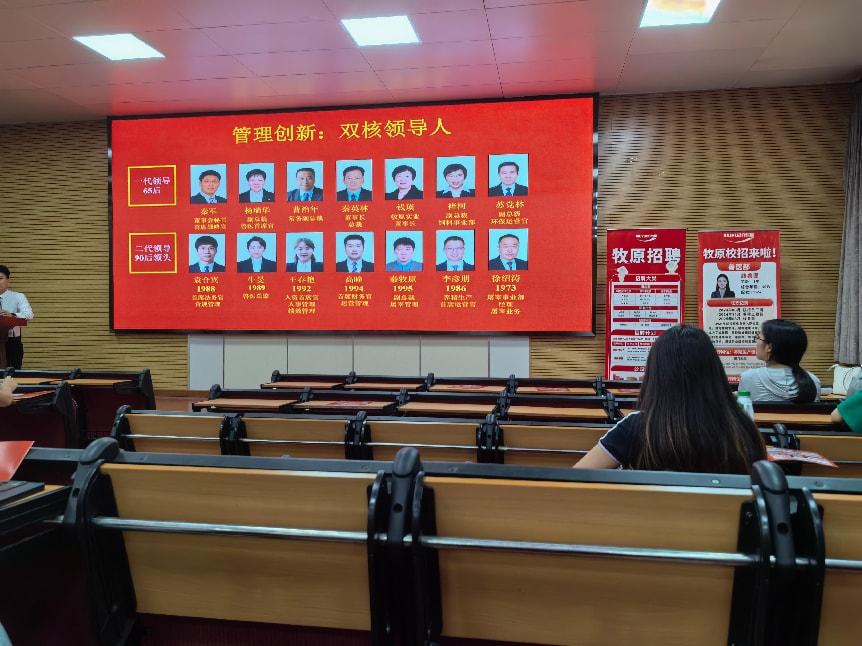 讲座伊始,牧原集团负责人围绕企业发展历程、核心业务布局及行业发展前景展开介绍,结合农牧产业现代化发展趋势,详细解读了集团在养殖技术研发、全产业链建设、数字化管理等方面的核心优势,让在场学子对牧原集团的行业地位及发展潜力有了全面认知,打破了对传统养殖企业的固有印象。