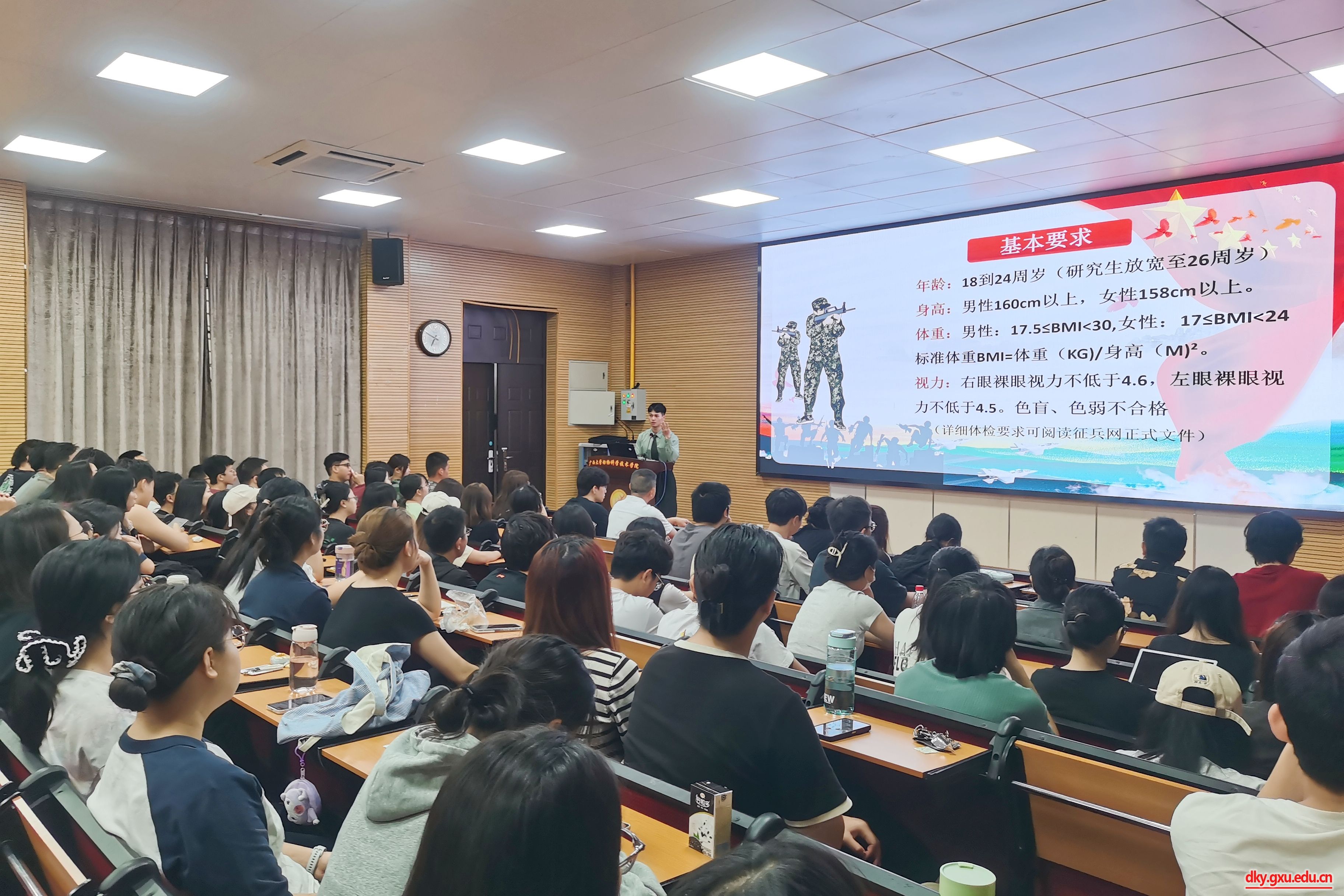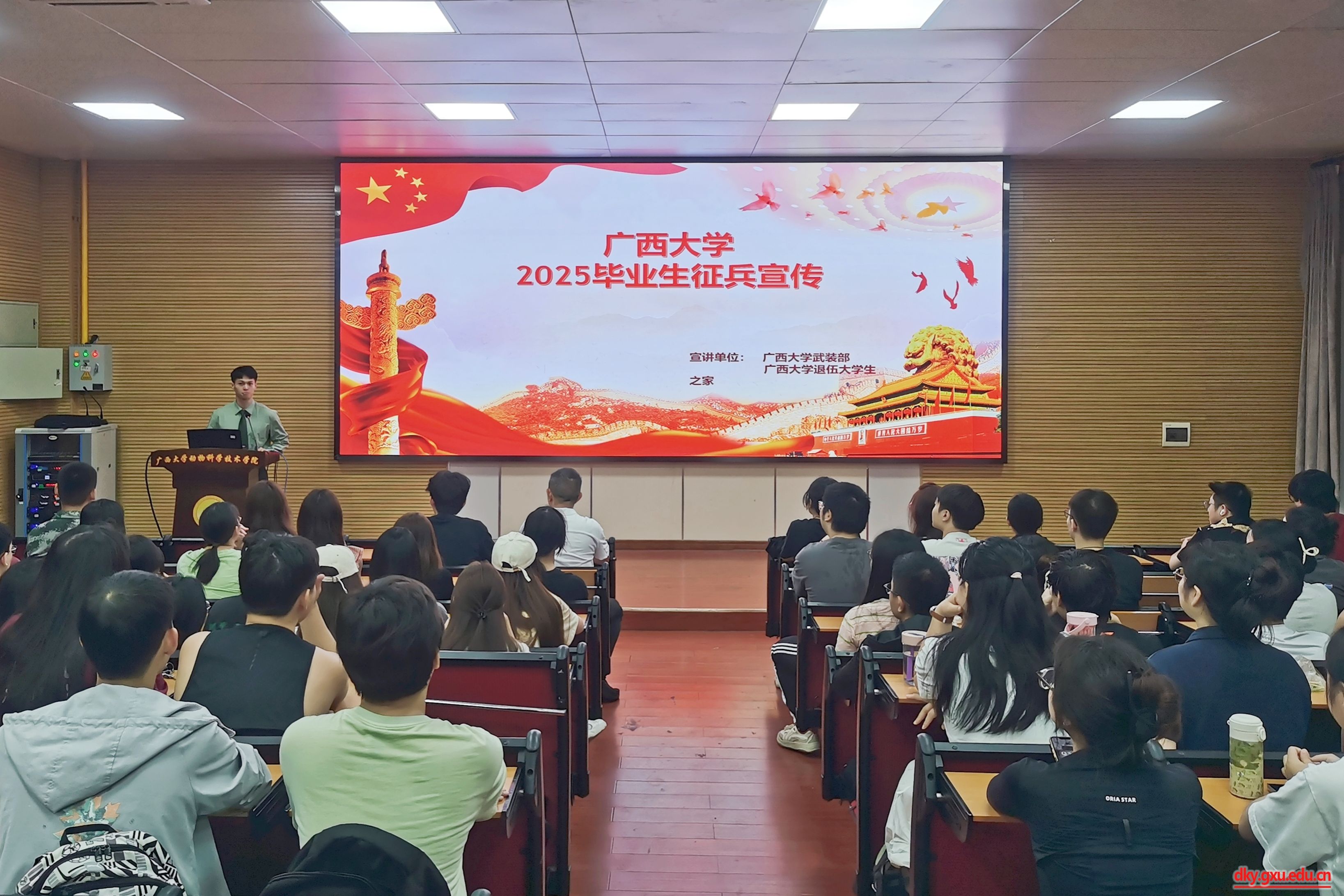 6月10日上午,威廉官网中国官方网站在318报告厅举行2025年征兵动员会议,校武装部陈榕平和退伍大学生代表受邀到场为同学们详细讲解应征入伍政策。威廉官网中国官方网站团委书记刘诚,辅导员陆维鸿和2025届毕业生参加此次会议。