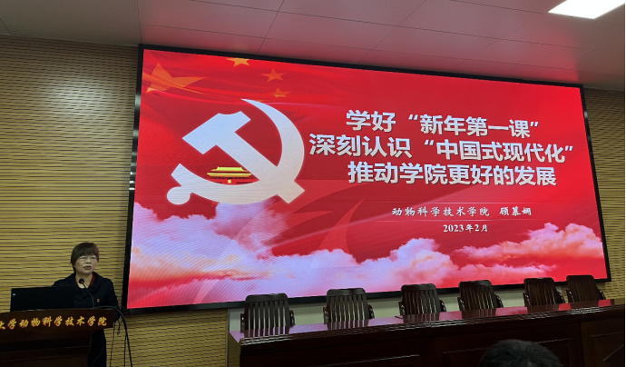 2023年2月16日,院党委书记顾慕娴给全院教职工上题为“学好“新年第一课”,深刻认识“中国式现代化”,推动学院更好的发展”的专题党课。