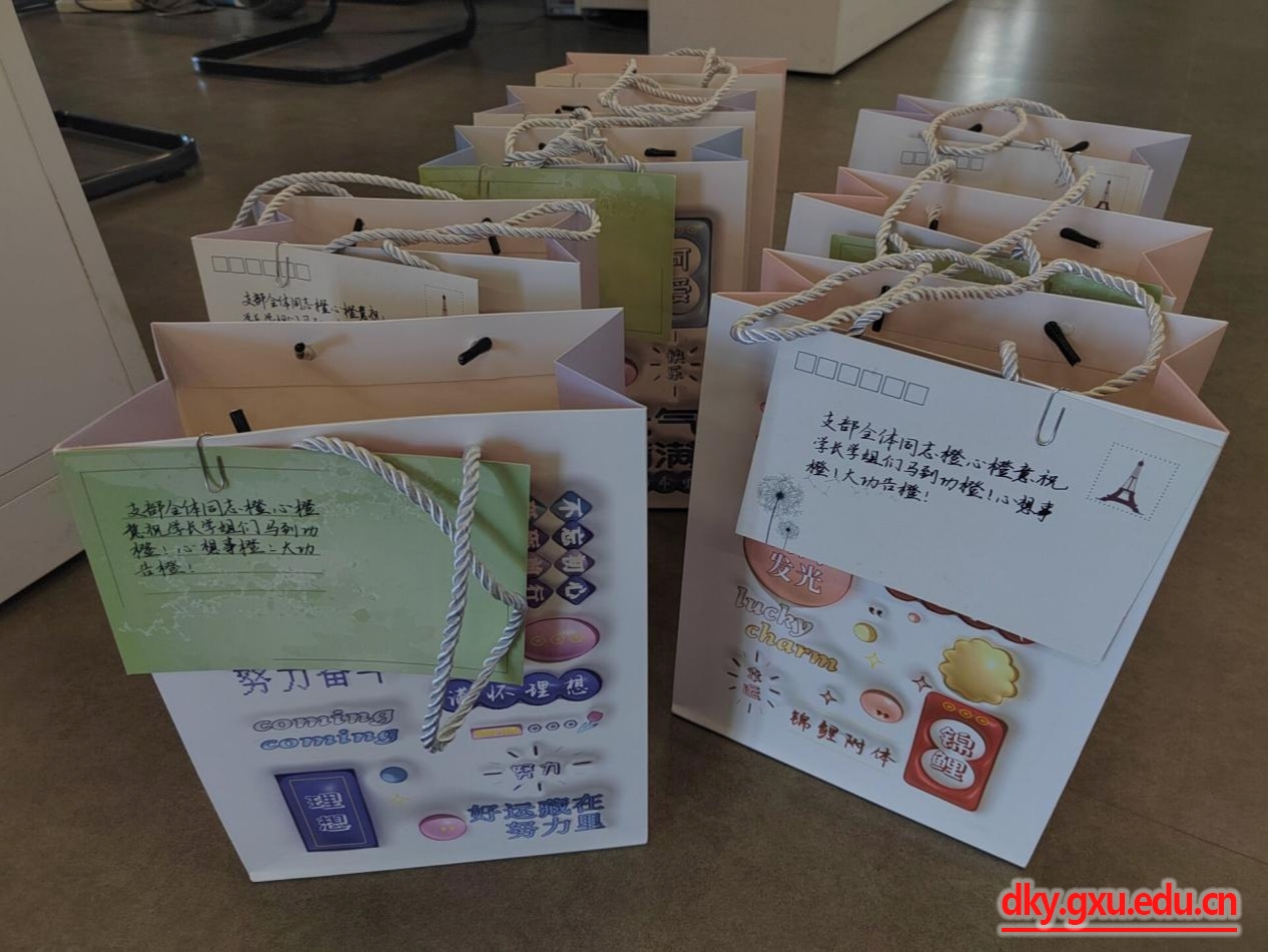 12月21日,距离2024年全国硕士研究生入学考试还有2天,为帮助支部考研同志坚定备考信心,鼓舞考研士气,威廉官网中国官方网站本科生动物科学第二党支部为全体考研同志准备了“橙”心祝福礼袋。