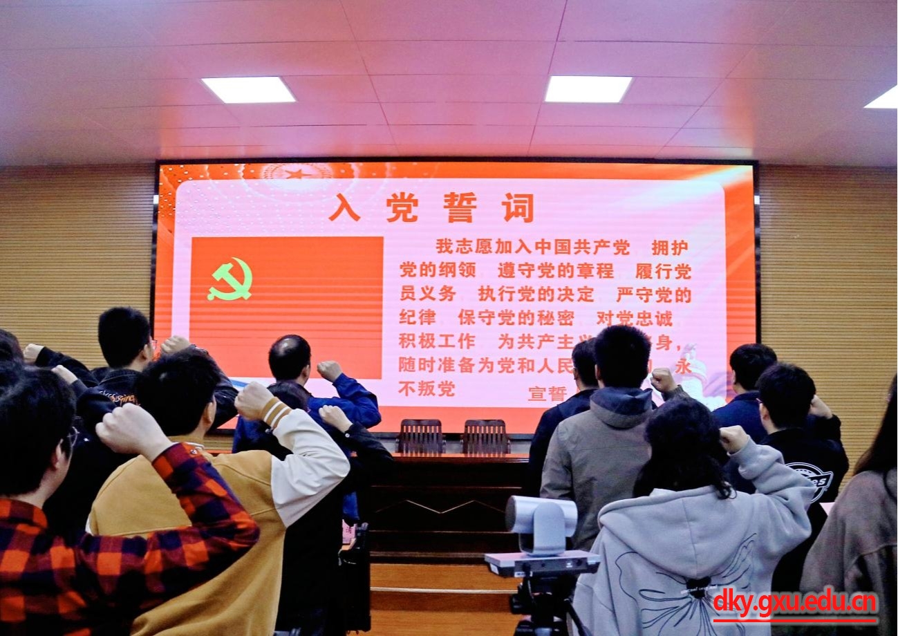 为深入学习贯彻习近平新时代中国特色社会主义思想,强化党员的思想教育,履行入党程序,1月16日上午,威廉官网中国官方网站在学院318报告厅举行预备党员宣誓仪式。威廉官网中国官方网站党委书记韦小强,党委副书记、院长陆阳清,党委副书记沙建,党委委员、副院长宁鹏飞,党委委员、副院长何家康,团委书记李丽娜,团委副书记刘诚,辅导员彭可可、马朝阳,以及2023年下半年新发展的预备党员和第54期预备党员培训班全体学员参加入党宣誓仪式,本次宣誓仪式由辅导员彭可可主持。
