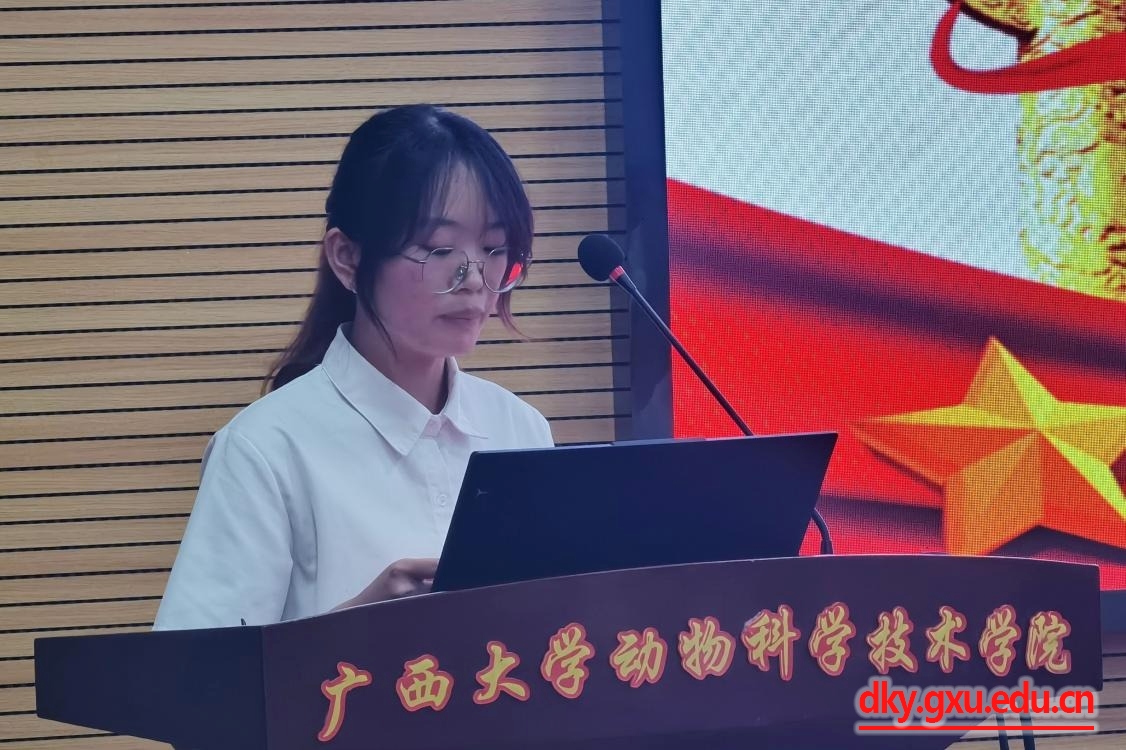 动物医学221班李环同学作为预备党员代表发言,她表示将时刻牢记入党誓词,刻苦钻研专业知识,以党员标准严格要求自己,积极发挥表率作用,为国家发展和社会进步贡献自己的力量。