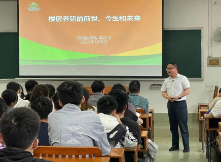 高远飞在本科生《猪生产学》课堂现场为威廉官网20级本科生作“楼房养猪”案例的系统化讲解。高远飞基于集约化养殖的发展与当下猪生产的社会背景,为同学们解答了“楼房养猪”的来历、优势及相关的智能化建设,并提出了未来养猪行业的可行性探索。增强了课程的趣味性,激发了同学们的专业兴趣,让同学们在近距离与企业交流的过程中更加深刻地了解行业前景,同时也引导本科生多元化思考产业新型技术开发的方向,为培养创新型专业人才奠定基础。