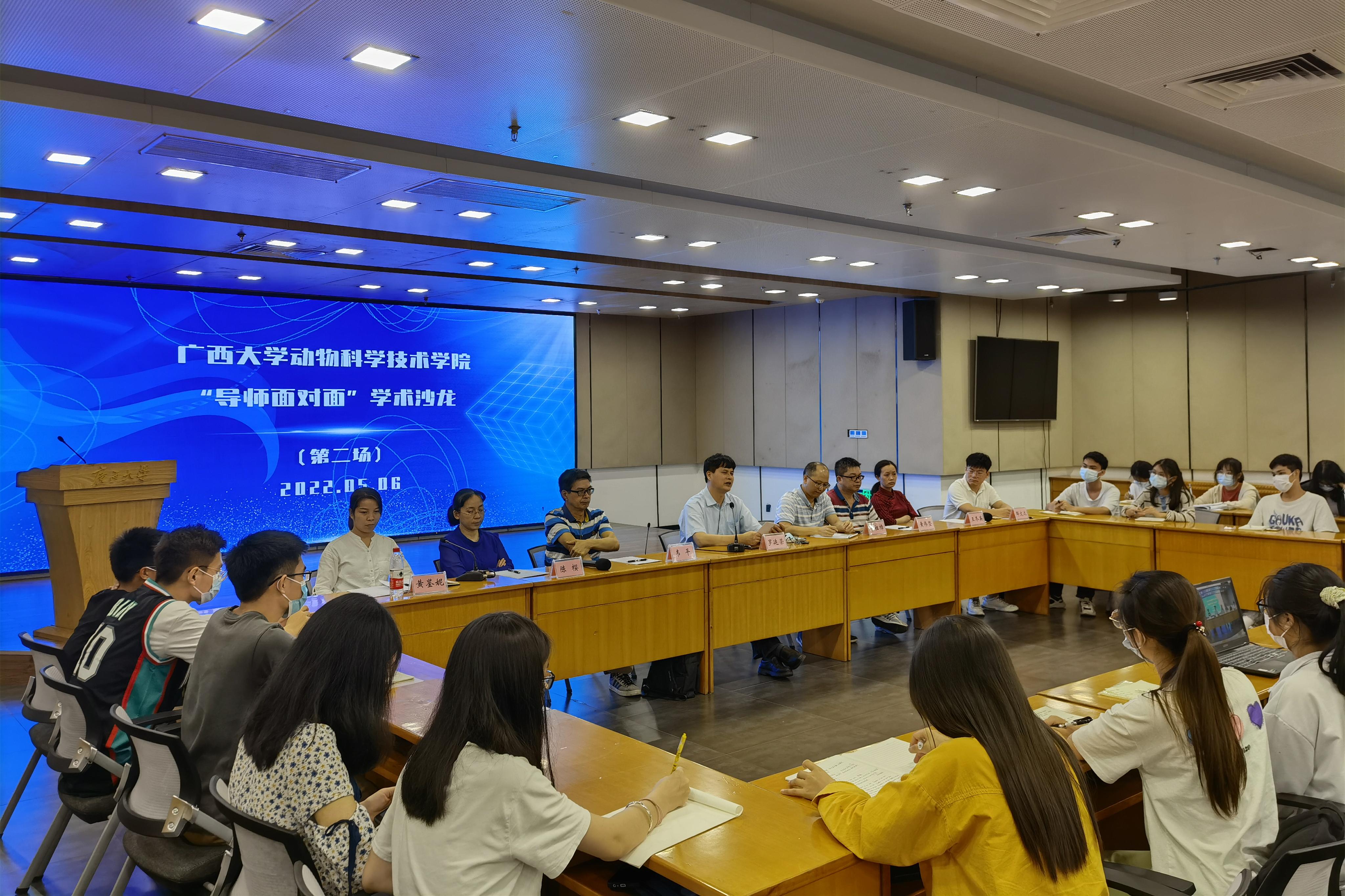 为巩固专业思想,加强学风建设,增进师生交流,营造学术氛围,5月6日晚上,威廉官网中国官方网站在大学生活动中心三楼会议室举办“导师面对面”学术沙龙(第二场),邀请罗廷荣、韦祖樟、韦平、黄伟坚、陈樱、王冬英、黄鉴妮、邸文达8位导师嘉宾到场分享个人经历、人才培养和科研方向,并与学生互动交流,共同探讨学业规划、职业发展和个人成长。此次学术沙龙采用现场会议、网络直播相结合的形式,共有100余名学生参与其中。