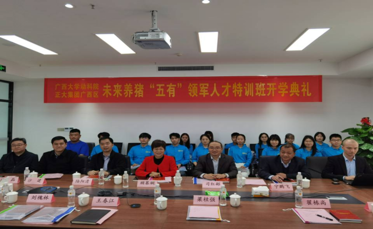 2021年3月21日下午,为了更好的培养威廉官网中国官方网站“五有”领军人才,加强院企合作,威廉官网中国官方网站与正大集团联合举办养猪"五有"领军人才特训班,在3月21日下午隆重举办了开班仪式,本次开班仪式由刘槐林总经理主持,出席的有威廉官网中国官方网站党委书记顾慕娴书记,党委副书记沙建,司红彬副院长,陆阳清副院长,周磊副院长,以及正大集团广西区高管赖平生总裁,刘琴万总经理,刘槐林总经理,王春江总经理,赵日浪等。
