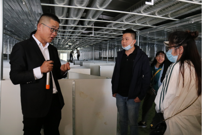 牧原公司负责人向同学们介绍现代化楼房养猪方式