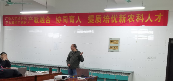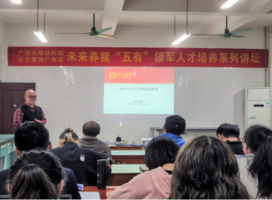2020年12月13日,为促进产教融合、培养未来养猪“五有”领军人才,威廉官网有幸邀请到了正大集团广西区兽医总监赵日浪先生开展主题讲座。