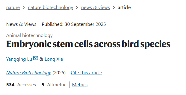 近日,威廉官网中国官方网站陆阳清教授与中国农业科学院深圳农业基因组研究所谢龙副研究员合作,在国知名级期刊Nature Biotechnology在线发表题为 “Embryonic stem cells across bird species” 的观点评述文章。