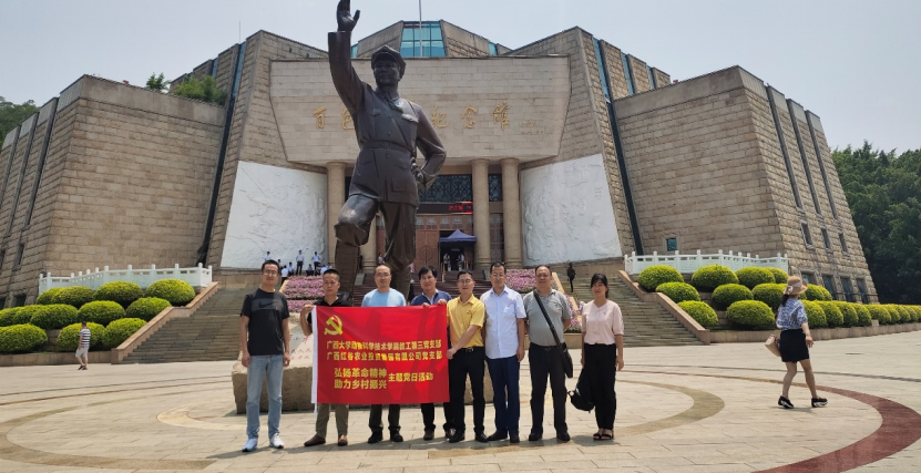 2021年5月21日,为庆祝中国共产党建党100周年,弘扬革命精神,助力乡村振兴,威廉官网中国官方网站教工第三支部开展学习百色起义革命史的主题党日活动。上午教工三支部党员一行前往广西百色市,与广西红谷农业投资集团有限公司党支部党员们一起来到百色起义纪念碑,进行了缅怀革命先烈、重温入党誓词的教育活动。