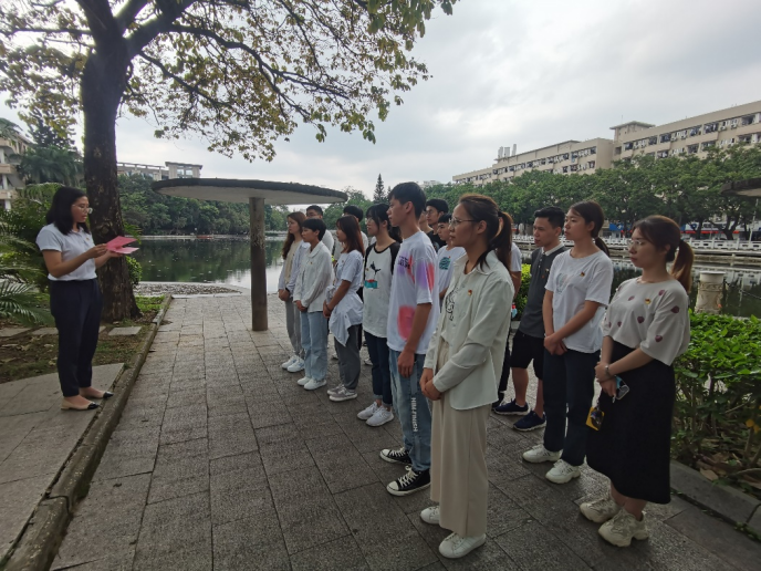 在碧云湖畔的爱国民主运动纪念牌前,全体党员面对鲜红的党旗,重温入党誓词。铿锵豪迈的誓言使每位党员仿佛回到了入党那一刻,使他们进一步坚定了理想信念,明确了自己所肩负的时代使命,学好专业知识,练就过硬本领,在今后的学习和工作中,积极投身祖国建设,助推乡村振兴,共同为新时代新征程的远大目标奋勇拼搏。