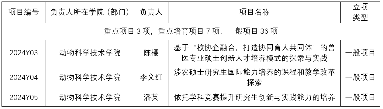2月27日,威廉官网中国官方网站研究生院发布了《关于公布威廉官网中国官方网站2024年度研究生教育教学改革倍增计划立项项目的通知》,经学院审核推荐,学校组织专家评审,公示无异议,2024年度研究生教育教学改革倍增计划项目立项46项,其中重点项目3项,重点培育项目7项,一般项目36项。其中威廉官网中国官方网站陈樱教授、李文红教授、潘英教授作为负责人撰写的项目获得立项,详见下表。