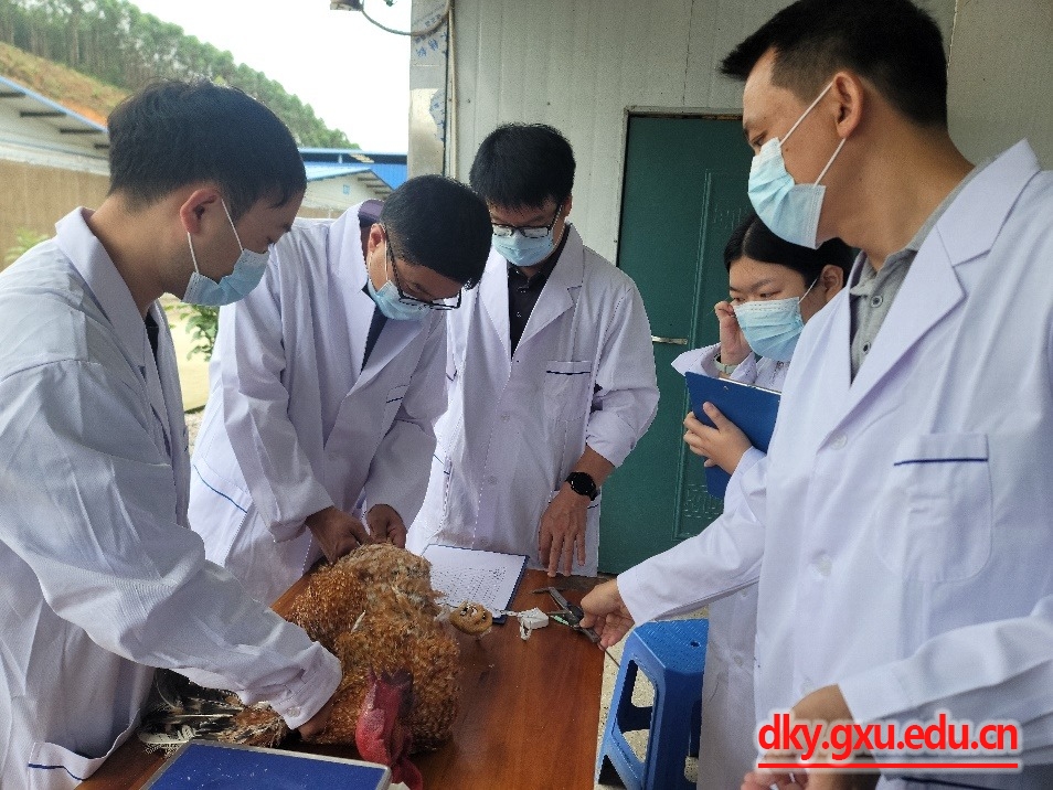 6月4日-6日,全国畜牧总站畜禽遗传资源处韩旭、国家畜禽遗传资源委员会家禽I组专家中国农业大学张浩教授、江苏省家禽研究所韩威研究员、山东省农业科学院家禽研究所曹顶国研究员对七百弄鸡畜禽遗传资源鉴定进行了现场核验,自治区种业处吴晓丹副处长陪同,威廉官网中国官方网站杨秀荣教授团队2023级博士研究生吴强、2021级硕士研究生袁虹及2022级硕士研究生姜涛参与了现场核验的测定工作。