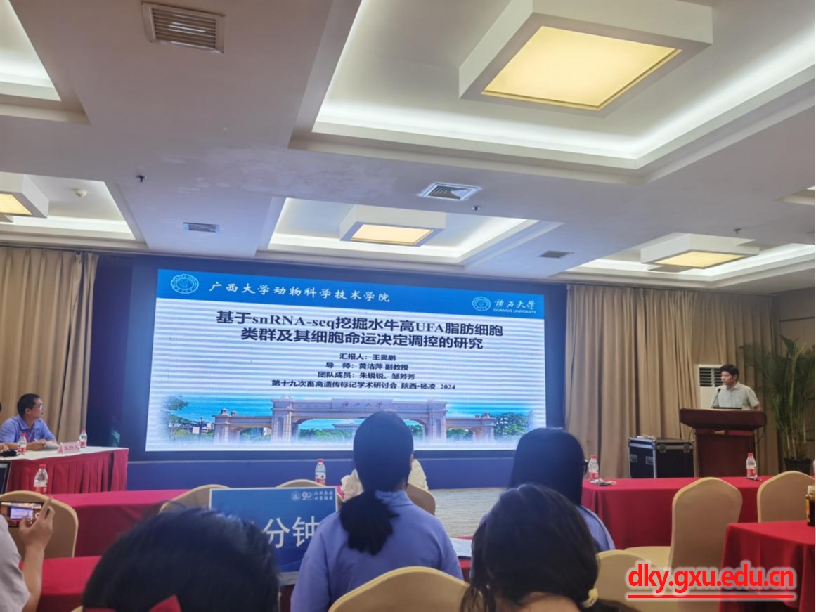 本次大会以“多组学数据驱动的动物遗传标记创新”为主题,汇聚了国内外从事畜禽遗传标记研究、开发和应用的专家、学者和技术人员,对本领域最前沿的研究进展和成果进行专题报告和讨论。与会者就基因组学、表观遗传学、单细胞转录组学、基因编辑及转基因动物等新技术及其在畜禽遗传标记和动物育种中的应用进行专题报告与讨论。会议分不同场次分享了6个特邀报告、71个口头报告和海报展示94篇,凝聚了全国畜禽遗传标记研究领域的最新科研成果。在本次会议中,威廉官网博士研究生钟丹丹(导师:李辉)和硕士研究生王昊鹏(导师:黄洁萍)分别做了口头汇报,博士生朱锐锐(导师:黄洁萍)和李雪华(导师:赵云翔)以及硕士研究生赵家辉(导师:李辉)和康雨锦(导师:李辉)做了墙报。
