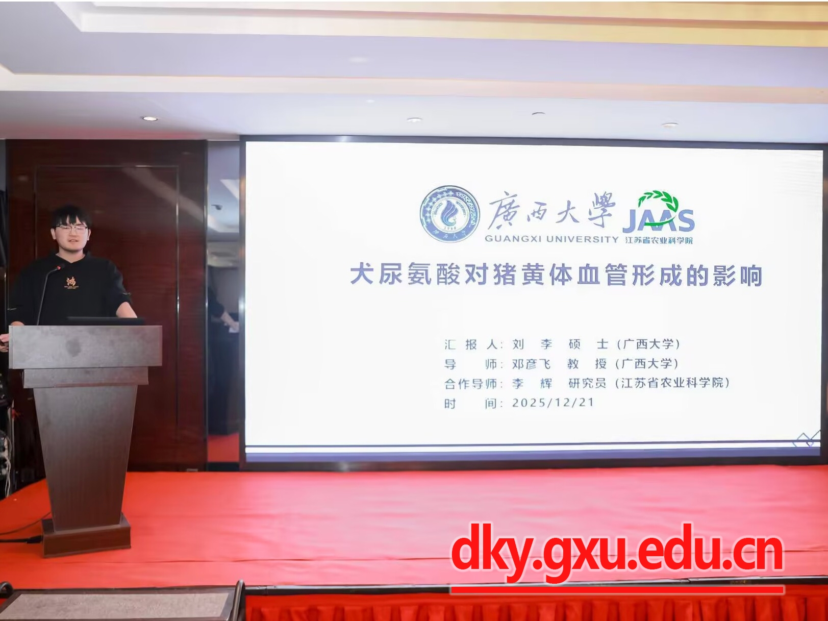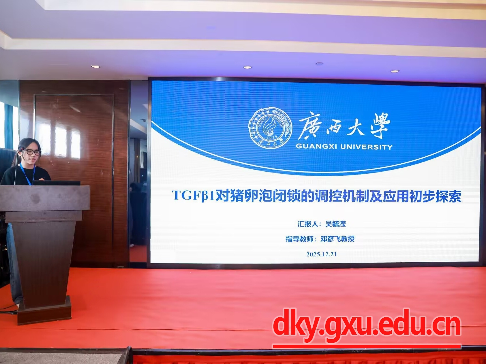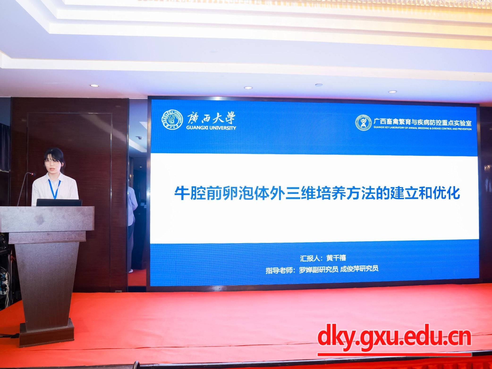 本次研讨会以“促进动物繁殖理论与技术创新,推动产业高质量发展”为主题,汇集了繁殖领域基础研究、前沿技术探索以及产业发展的最新进展和成果。会议交流内容包括特邀报告、青年学者论坛、论文摘要以及墙报。威廉官网五名硕士研究生(黄千禧、吴毓滢、刘李、冯瑶、杨星)在青年学者论坛分别就腔前卵泡的体外培养、卵泡闭锁和黄体形成、母胎互作机制和早期妊娠诊断等新进展进行了口头汇报。此外,黄千禧同学论文被推举为高质量论文。