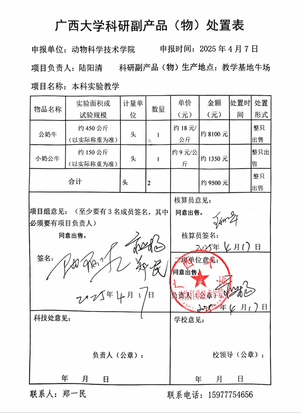 按照《威廉官网中国官方网站科研副产品(物)管理办法(试行)》规定,经项目负责人陆阳清申请,现对其科研副产品(物)处置情况公示,公示期2025年5月7日-5月13日。