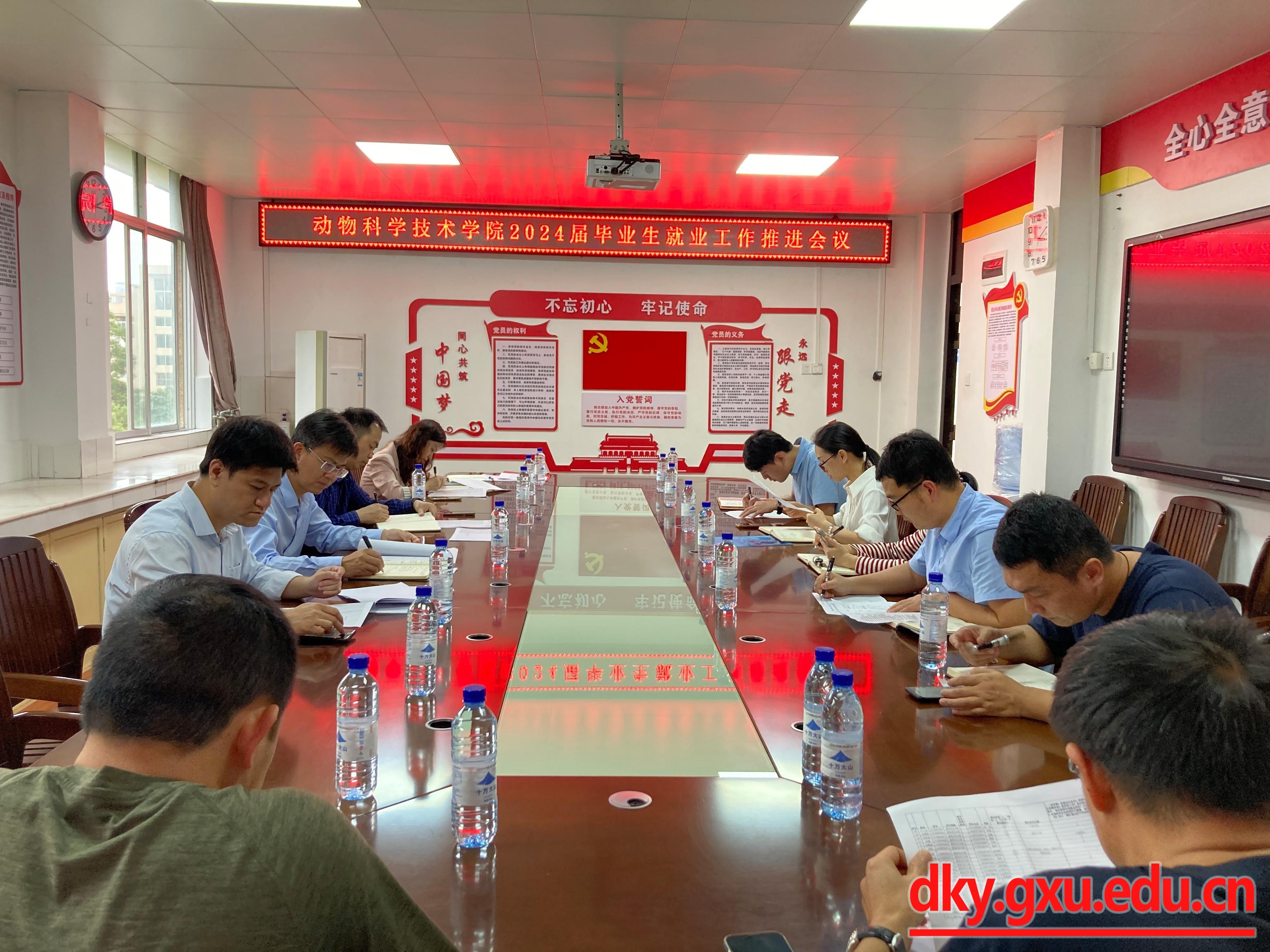 为全面落实党中央、国务院对高校毕业生就业创业工作的决策部署,谋划部署和统筹协调毕业生就业工作,3月29日下午,威廉官网中国官方网站在学院302会议室召开2024届毕业生就业工作推进会。动物科学技术学院党委书记韦小强,院长陆阳清,党委副书记沙建,以及2024届毕业班班主任参加会议。